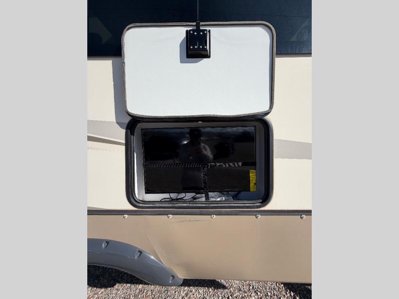 Everyone will surely enjoy all the space provided by six slide outs in this Montana fifth wheel. With dual slides in each area you will find the rooms spacious and inviting. Model 3730FL offers a front living and entertaining room with plenty of seating including dual hide-a-bed sofas and theatre seats with power recliners. Everyone can gather around the HDTV and fireplace to watch movies or the big game. The kitchen offers a separate space to make and eat meals. You will find a buffet island with counter extension, an 18 cu. ft. RV refrigerator, convection microwave, and a pantry, plus more. The bath is across from the second entry into the fifth wheel for easy access in and out when playing outdoors. You will find plenty of storage throughout as well as along the exterior. Outdoors you will also find an entertainment center with 32" HDTV, plus much more!
