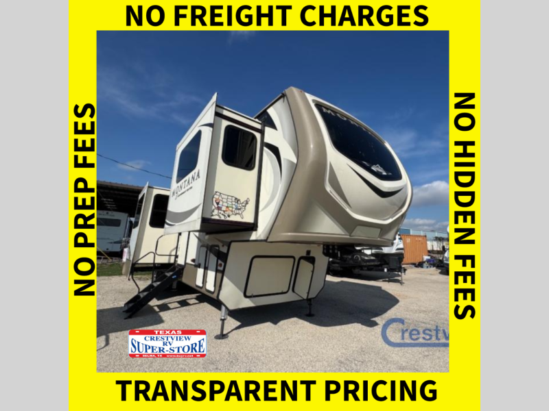 When packing for your next trip in a Keystone Montana luxury fifth wheel you will appreciate the enormous drop frame pass-through storage compartment, the MORyde "Step Above" entry steps with strut assist, and the LED light package including "super-bright" taillights with backup marker and off-door scare light. The Montana 20th Anniversary Edition adds exclusive features such as the Key TV satellite prep, LED accent lighting, Tru-fit slide construction, and Easy Sweep resilient flooring. You will love the in-floor heating ducts, which allow for more airflow to be distributed evenly for optimal comfort. the LED motion sensor light in the pass-through compartment and convenience center, plus the Four Season Living package allowing you to travel whenever you like. It's time to find the luxury fifth wheel you can enjoy for years to come, choose a Montana by Keystone today!