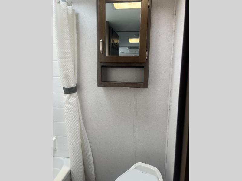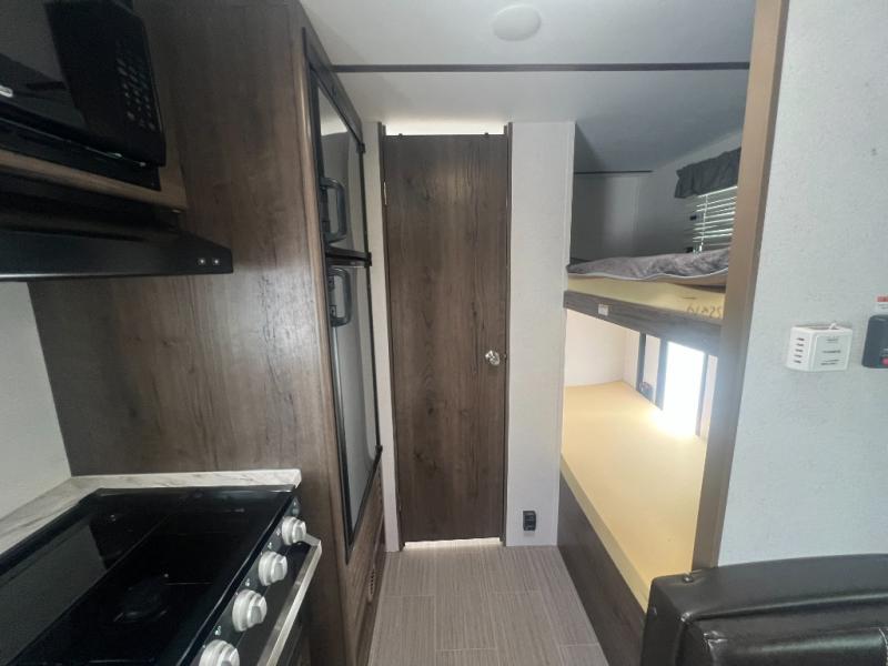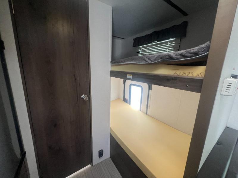 Looking for a travel trailer without having lots of setup and cleanup of a larger unit? Do you enjoy outdoor activities and inside comforts? Then imagine you and your family dining at the booth dinette after whipping up the meal before heading out to explore the great outdoors. Once you get back with your family, everyone can take turns showering in the private tub/shower and toilet room. You can sleep on a queen bed up front while the kids sleep on the bunk beds or dinette. There is storage throughout the inside, and the larger camping gear can be stowed away in the exterior pass-through compartment. Start making memories in this Passport.