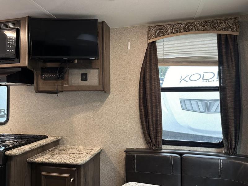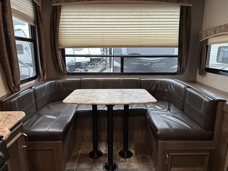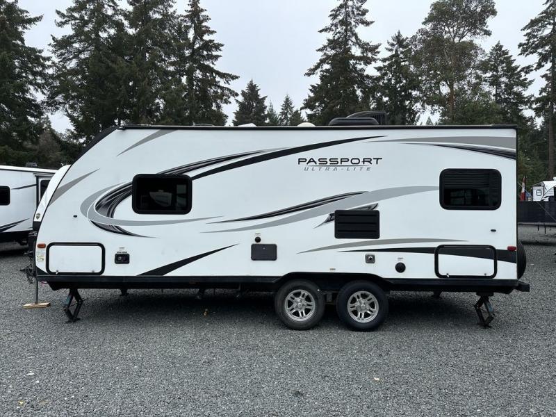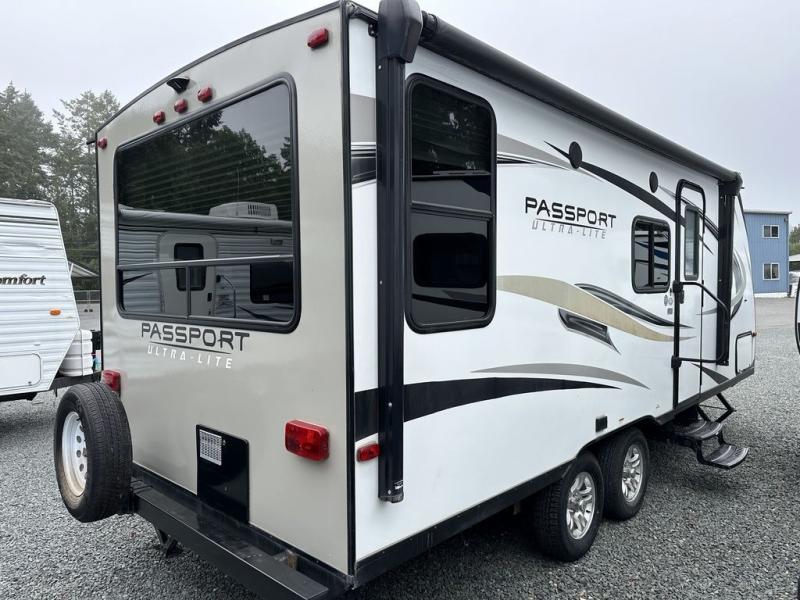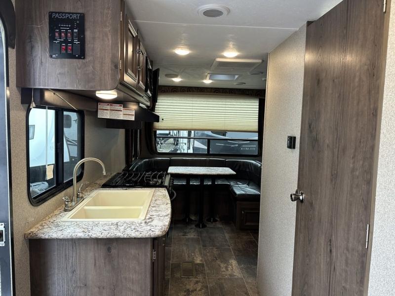 Can you envision relaxing by the campfire on a beautiful evening or on the U-shaped dinette on a rainy day? This Passport travel trailer provides comfortable seating and sleeping arrangements for three to four campers, plus full bath amenities. You will enjoy a queen bed with a privacy curtain for extra space to get changed or to separate the rooms. The bathroom allows you to stay clean while away from home, and the kitchen appliances provide everything necessary to make your favorite meals. You will find an exterior pass-through compartment giving you extra space for the larger camping items, and the interior includes plenty of storage for your clothing, games, and such. Take this Passport with you today!