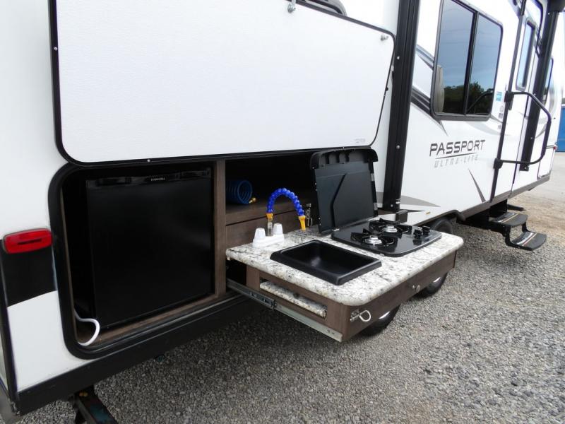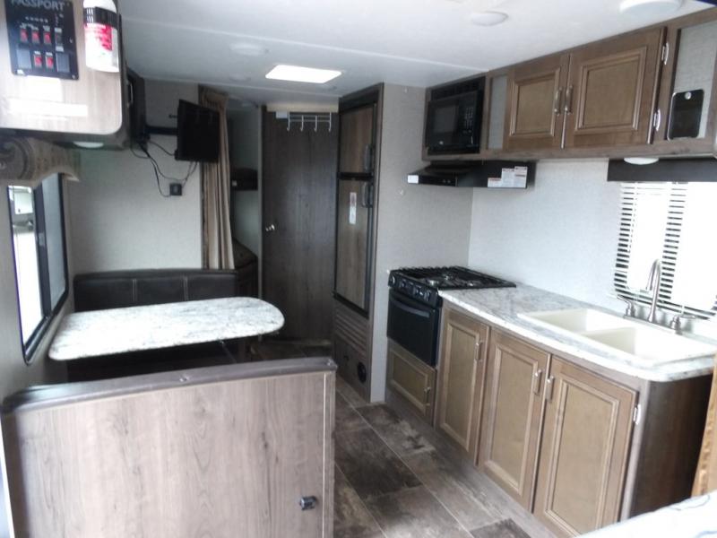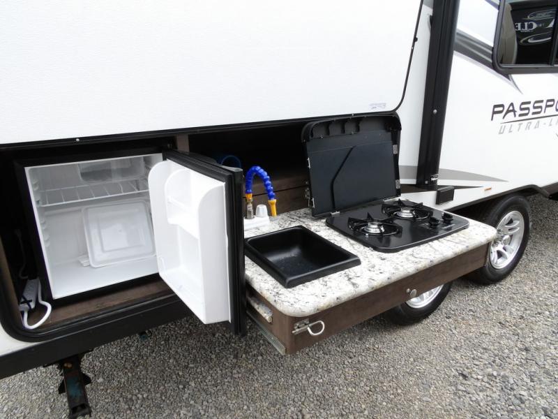 Have you been envisioning your family sitting around the campfire after riding bikes all day? Or daydreaming about visiting all the state parks with the comforts of home hitched up to your tow vehicle? This Passport just makes sense when you need sleeping space for six to seven, appreciate having your own full bathroom, and love cooking outdoors. From the Murphy bed and sofa combination allowing for a bedroom up front or a living area to the rear set of double size bunk beds, you will be able to enjoy this model for years. Don't forget about the outside kitchen, and the exterior pass-through compartment. Family fun and loads of memories will happen when you travel with this Passport!