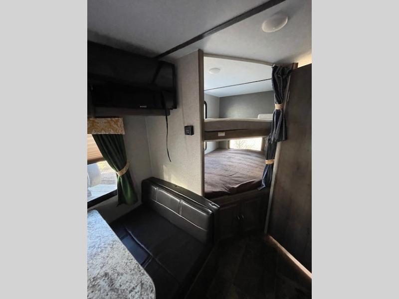 Have you been envisioning your family sitting around the campfire after riding bikes all day? Or daydreaming about visiting all the state parks with the comforts of home hitched up to your tow vehicle? This Passport just makes sense when you need sleeping space for six to seven, appreciate having your own full bathroom, and love cooking outdoors. From the Murphy bed and sofa combination allowing for a bedroom up front or a living area to the rear set of double size bunk beds, you will be able to enjoy this model for years. Don't forget about the outside kitchen, and the exterior pass-through compartment. Family fun and loads of memories will happen when you travel with this Passport!