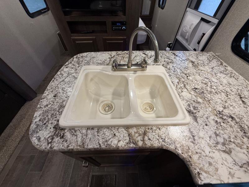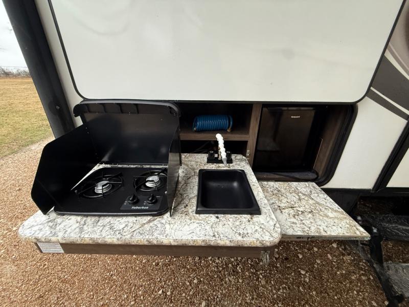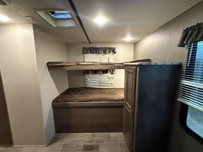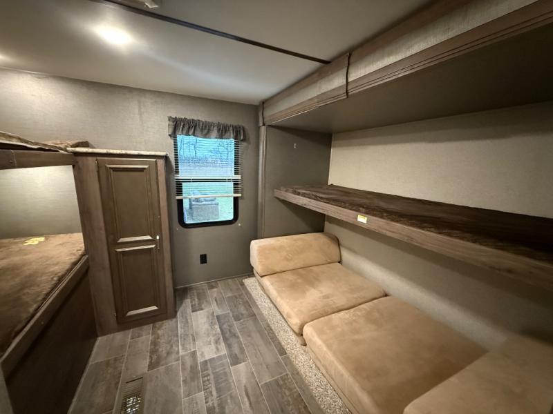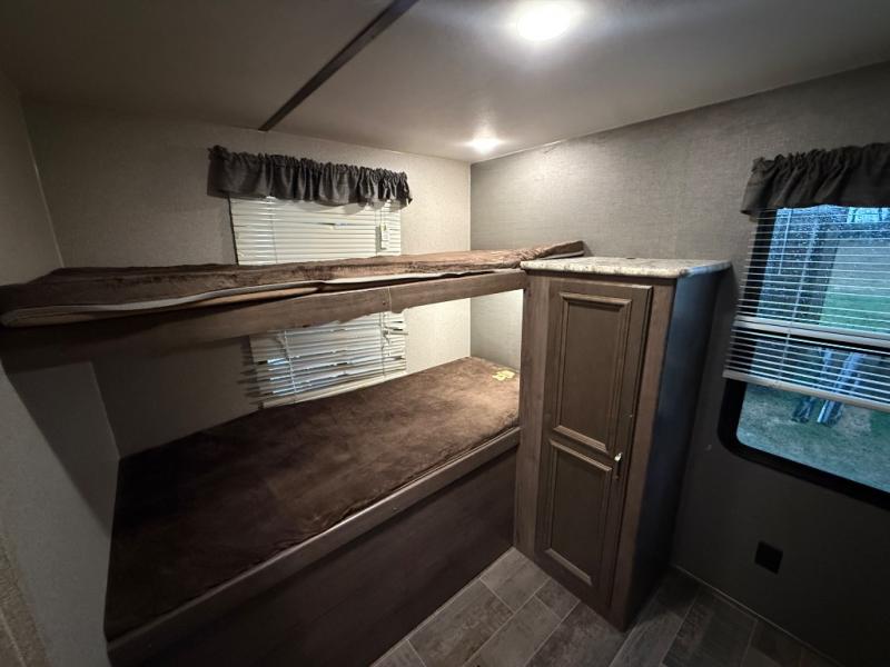A private bedroom for yourself, plus a spacious bunkhouse for the kids and their friends sounds like the perfect RV for someone looking to "go big" on their campouts. This Passport 3220BH Grand Touring travel trailer offers plenty of walking around room thanks to the dual slides and two exterior entry doors. The chef has the choice of cooking inside, or outside on the outdoor kitchen. You all can dine at the U-shaped dinette or while sitting on the sofa watching TV. The kids can draw straws to decide which of the three bunks will be theirs. The convenience center inside the private bedroom, the storage throughout, and the exterior pass-through compartment allows you to carry all your things. Take a look to find even more features allowing you to "go big" with every adventure.