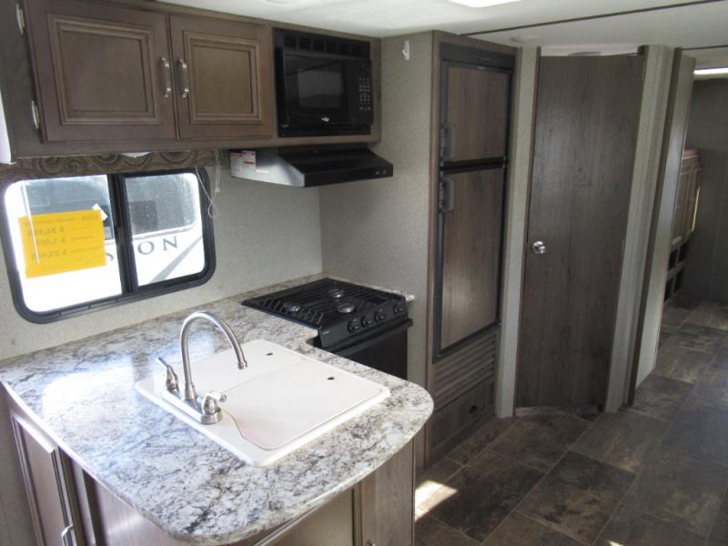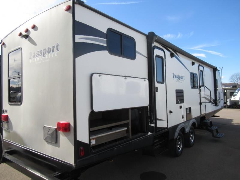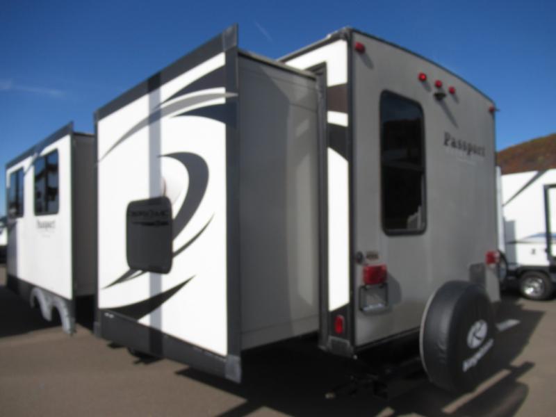 The Passport Grand Touring models are lightweight and towable behind many SUVs and half-ton trucks. Each model comes with Load Equalization axles that reduce sway for an easy tow, and the unit has an enclosed, sealed and heated underbelly for four seasons of traveling. Once at your destination you can walk up the triple entry steps and grab onto the XL folding entry assist handle for support. You will find several residential style features such as durable Armstrong linoleum, furniture with high grade fabric, and raised panel hardwood cabinet doors. The exterior shower is very useful to get cleaned up before entering the RV, washing your pets, or even cleaning a few dishes outside. Choose your favorite Passport Grand Touring model today, and start making memories tomorrow!
