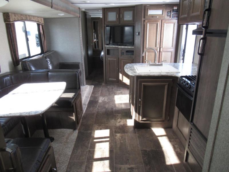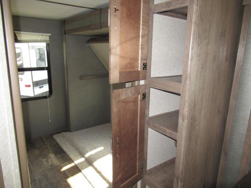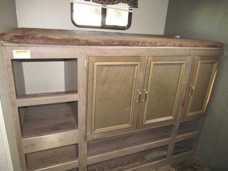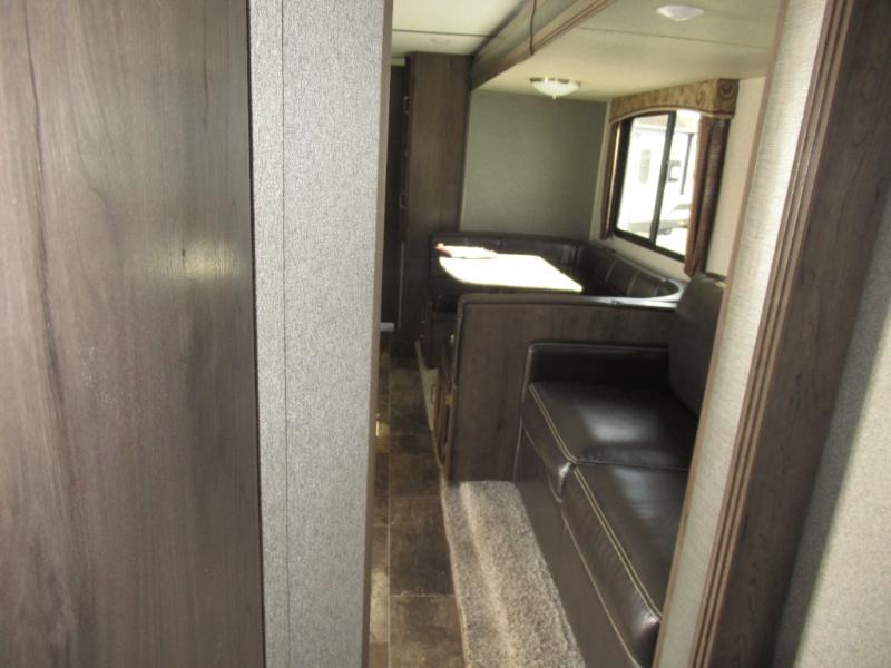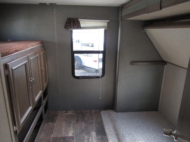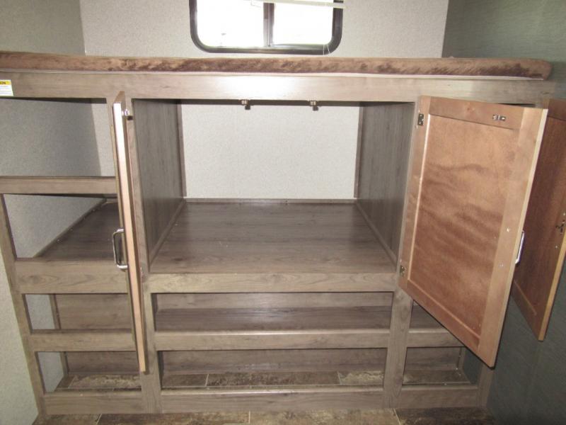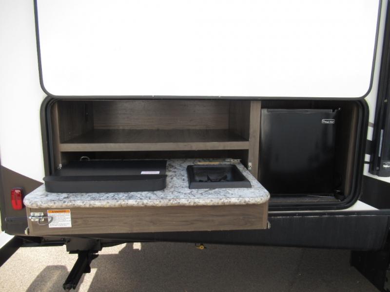 A spacious bunkhouse for the kids, a bath and a half, plus an outside kitchen are the perfect features for the outdoor enthusiast and his family. You can only imagine how much fun you will have hanging out at the campfire, hiking the trails, and playing games inside on the U-shaped dinette. This Passport 3350BH Grand Touring travel trailer offers plenty of walking around room thanks to the dual slides and two exterior entry doors. The cook has the choice of making meals inside, or outside on the outdoor kitchen. The convenience center inside the main entry, the storage throughout, and the exterior pass-through compartment allows you to carry all of your gear, plus some! If you are seeking a spacious RV with plenty of sleeping space for nine to ten sleepy campers, and enjoy the convenience of your own private bathroom, step inside today.