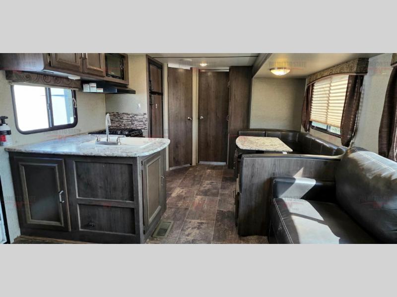 The Passport Grand Touring models are lightweight and towable behind many SUVs and half-ton trucks. Each model comes with Load Equalization axles that reduce sway for an easy tow, and the unit has an enclosed, sealed and heated underbelly for four seasons of traveling. Once at your destination you can walk up the triple entry steps and grab onto the XL folding entry assist handle for support. You will find several residential style features such as durable Armstrong linoleum, furniture with high grade fabric, and raised panel hardwood cabinet doors. The exterior shower is very useful to get cleaned up before entering the RV, washing your pets, or even cleaning a few dishes outside. Choose your favorite Passport Grand Touring model today, and start making memories tomorrow!