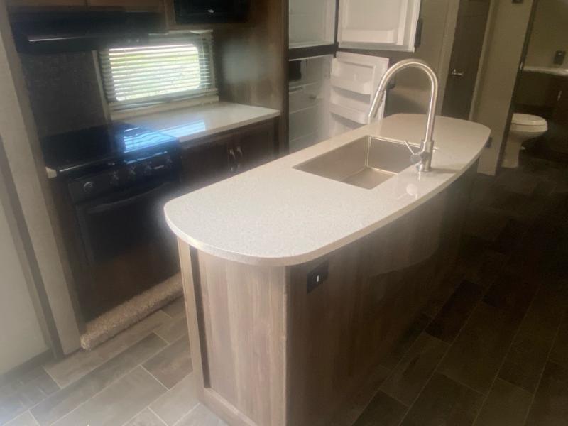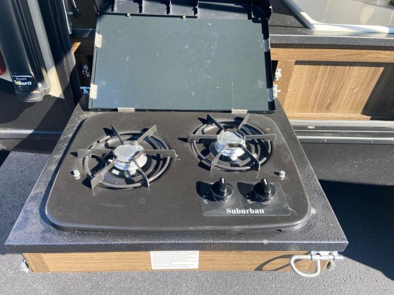 When you take your next trip across the country in this Premier Ultra Lite travel trailer, you will see for yourself what truly sets this trailer apart from all others. With its max-depth slide room technology, you get the most utilized and available space possible in the two slides that this trailer provides, which also gives this unit a beautifully open living area, and because of the large closets and pantries, this trailer also aids all of your storage needs. The private bedroom is a wonderful place to escape after a long day of traveling, and the outdoor kitchen allows you to take your dinner preparations into the fresh air.
