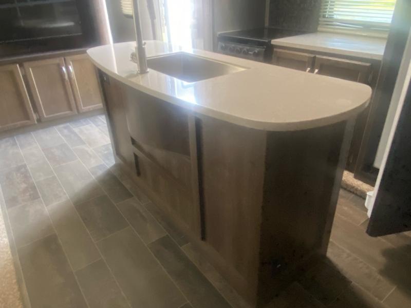 Because of the innovative and modern approach that Keystone has taken with the construction of the Premier travel trailer, you receive a unit that is both functional and comfortable. The residential in-floor heating system gives the stain-resistant Beauflor linoleum flooring a warm and cozy touch, and the 6' 11" vaulted ceilings keep the entire trailer open and inviting to all guests. If you enjoy hosting late-night get togethers with those guests, then the outdoor electric awning with LED lights is a perfect spot for you and your friends to get together as you listen to your favorite music on the exterior speakers.