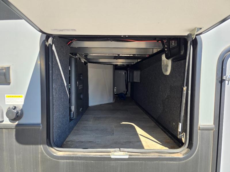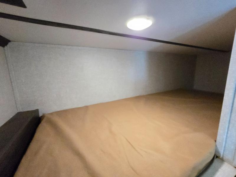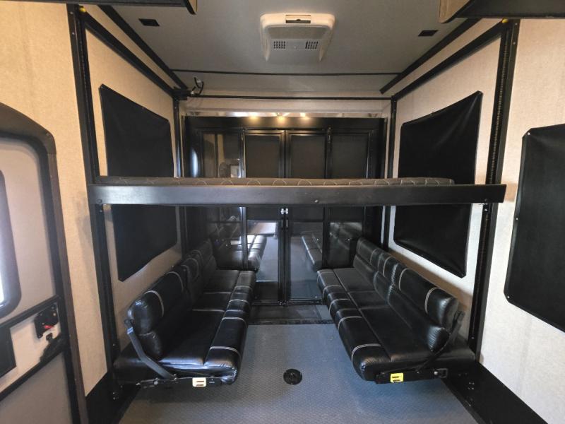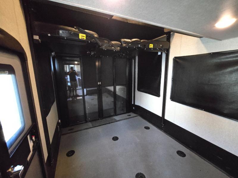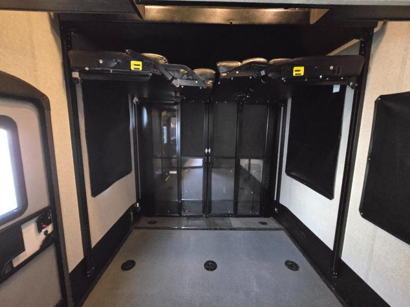 For a spectacular getaway each and every time you hit the trails, you need this Raptor toy hauler! The 11' separate garage with its electric bunk, dual opposing sofas, half bathroom, and second entry door will allow your guests to have their own retreat each night, and you will find the queen-size bed in the front master suite to be your favorite place to relax for the evening. Even the kids will have a place to call their own with the loft. For a midnight snack or a late-night movie, you can gather on the four-seat recliner or flip-up bar stools at the kitchen island and switch on the 50" LED HDTV.