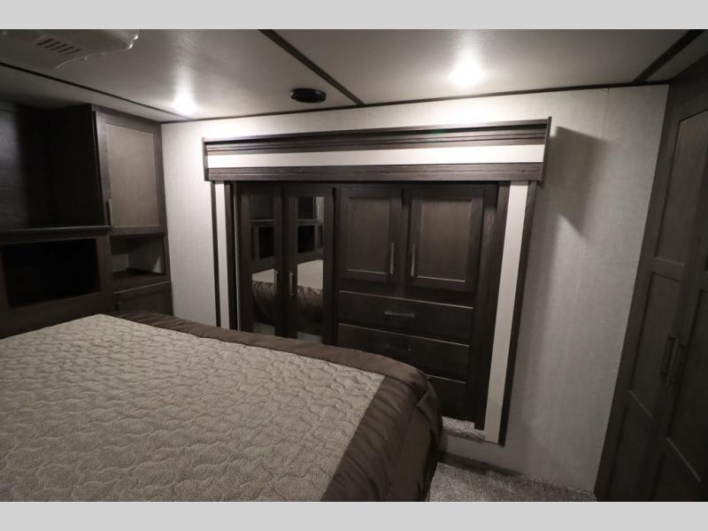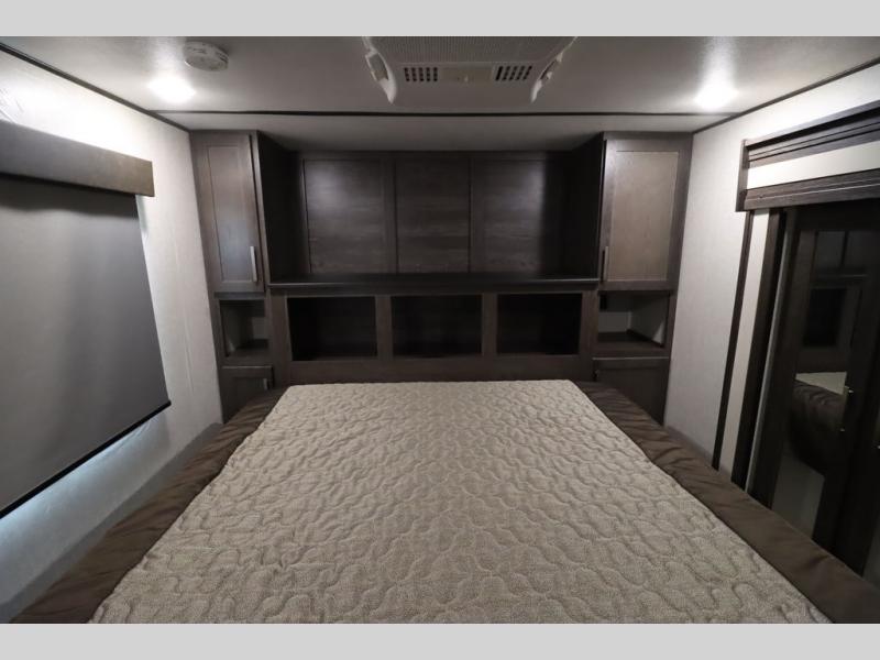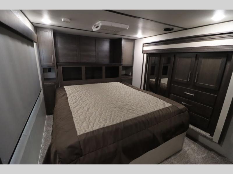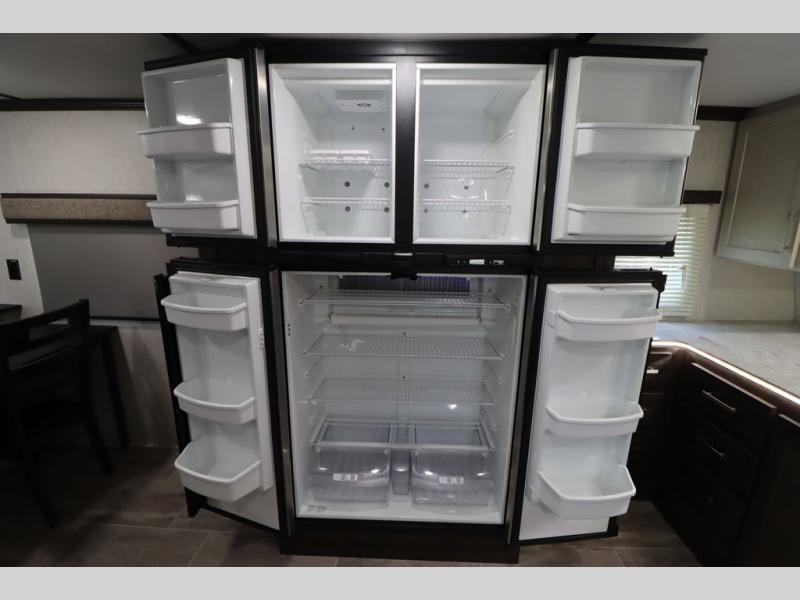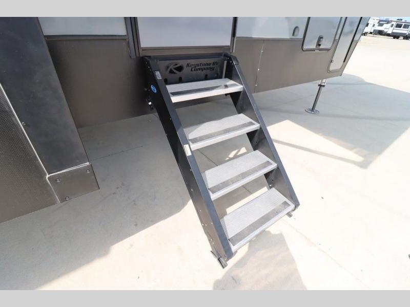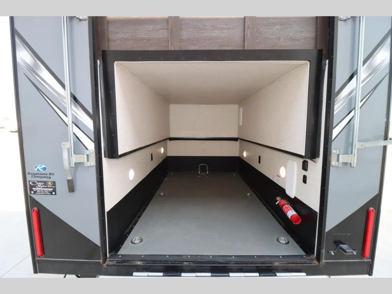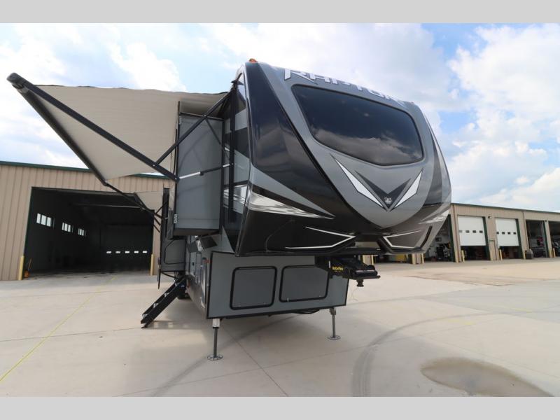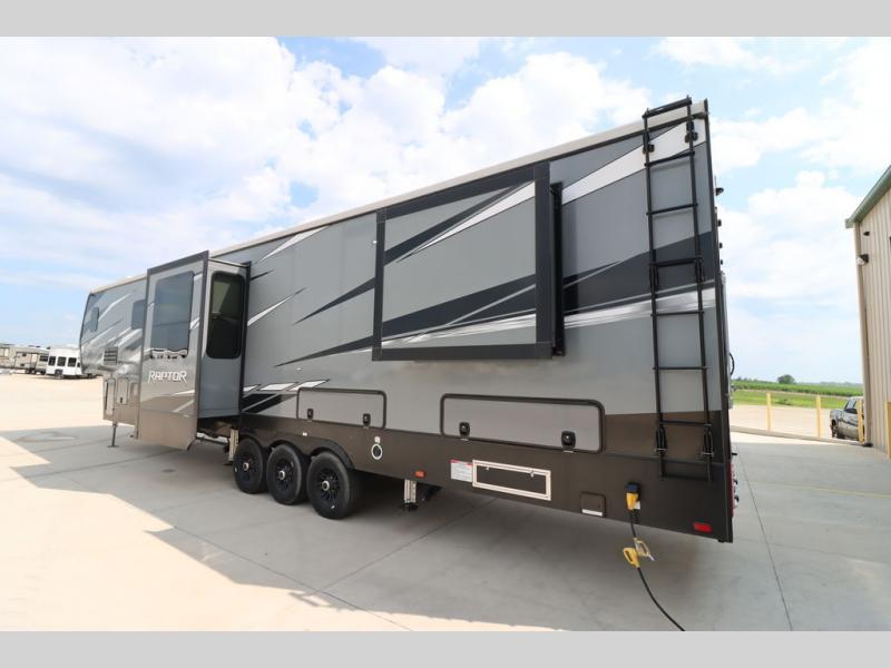 The Raptor toy hauler by Keystone has broken free from the rugged models of years past with its sharp, refined accessories and modern style, and to prove its advanced nature, the Raptor has included one of the largest refrigerators on the market into its design, an 18 cubic foot refrigerator. The Raptor is also a part of the only towable manufacturer who incorporates color-coded and numbered electrical wiring into its products, helping you save time and energy when troubleshooting electrical issues. Another best-in-the-industry component that is included with the Raptor is the 3-year limited structural warranty backed by Keystone RV which will ensure that these models truly are built for the long haul.