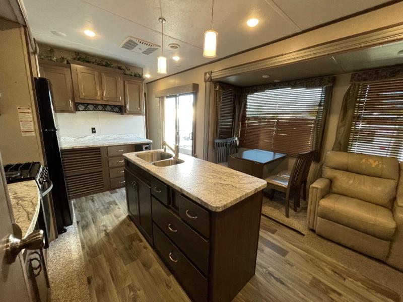 This Keystone Retreat Destination model 39RLTS features a rear living layout for entertaining your guests that may join you on your trip. You will love having a private front bedroom fit for a king. You have an exterior entrance into the bedroom for convenience after a long day, and then there are patio doors that enter the living/kitchen area. You can also relax in front of the fireplace on a rainy day and there is a 50" HD TV for some entertainment as well.