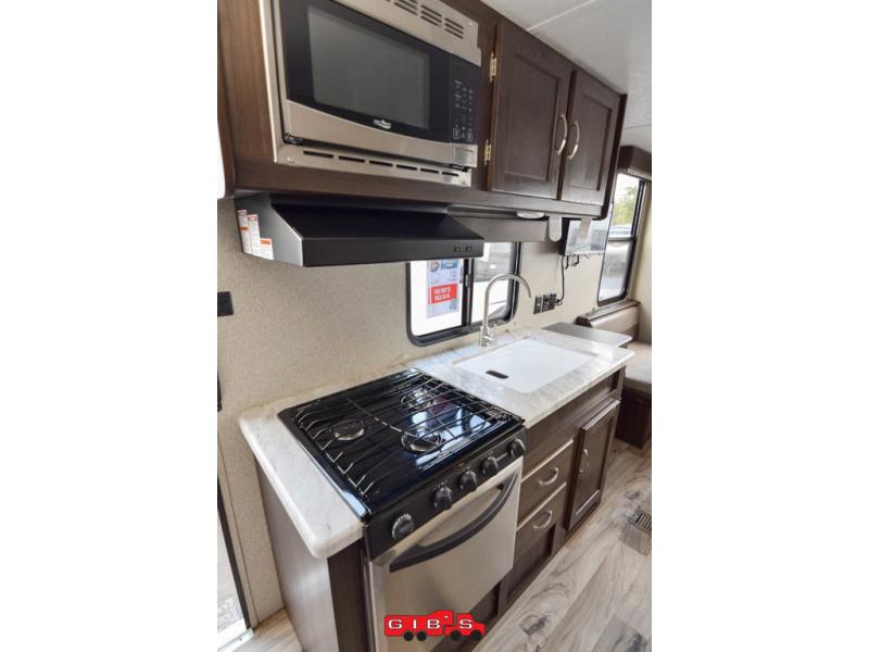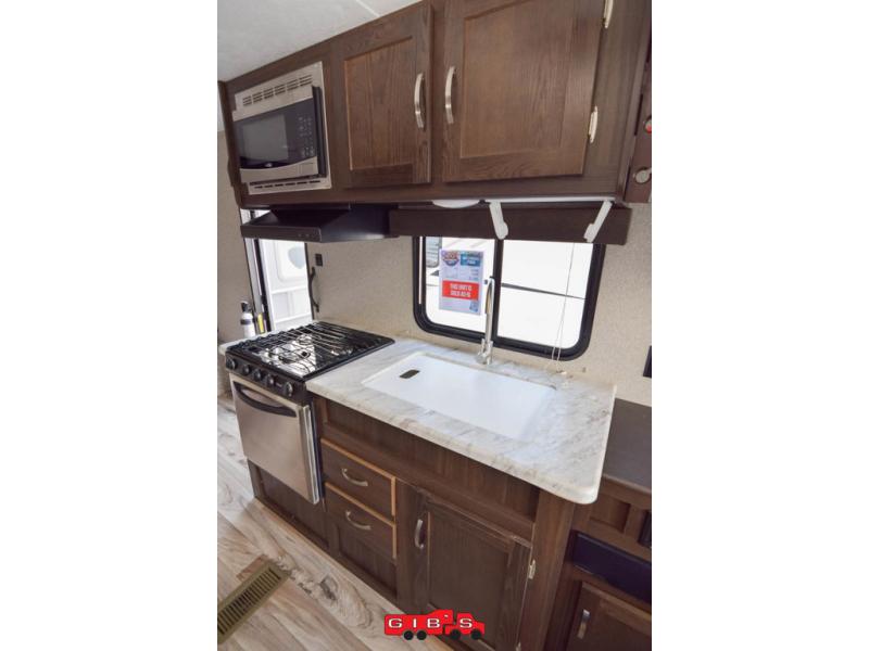 In any Keystone Springdale travel trailer, you will find premium features to make your camping experience feel like a home away from home. Some of these features are a high rise kitchen faucet, a 7 cu. ft. refrigerator, storage under the master bedroom, and an AM/FM Bluetooth CD/DVD entertainment system. These fifth wheels and travel trailers will provide you and your family with all the travel conveniences you want and expect without costing you a fortune. Each model includes a powder coated l-beam frame, cambered chassis, Lion's head nitro filled tires, and hurricane straps to reinforce the structure are just a few of the exterior/construction standards that create a unit built to last.