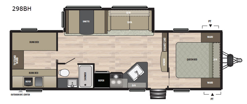 SUPER CLEAN 2019 KEYSTONE SPRINGDALE 298BH IS A RV LOADED WITH LUXURY!! 33 LONG. 2 BEDROOM UNIT, 1 XL SLIDE. 2 A/C. QUEEN MASTER SUITE. PRIVATE REAR BEDROOM WITH 4 BUNKS. DINETTE & A SLEEPER SOFA. FRONT PRIVATE BEDROOM.