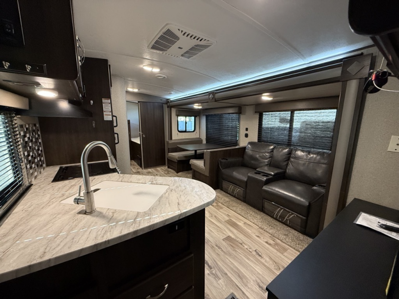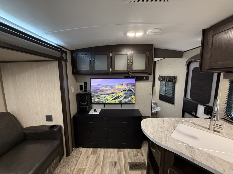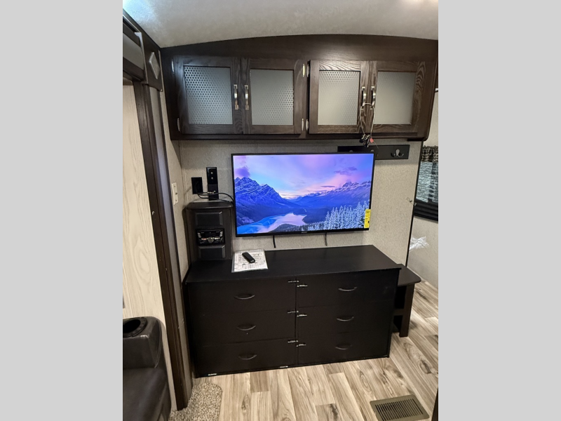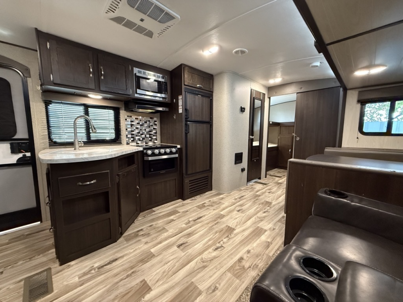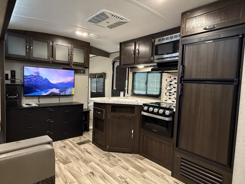 2 COLD A/C UNITS. 6 GAL WATER HEATER, 50AMP POWER. OUTDOOR STORAGE. OUTDOOR KITCHEN, SOLID STEP ENTRY. DUAL AWNINGS WITH LED LIGHTS. LUXURY FEEL THROUGHOUT!! ONLY 6901 UVW.