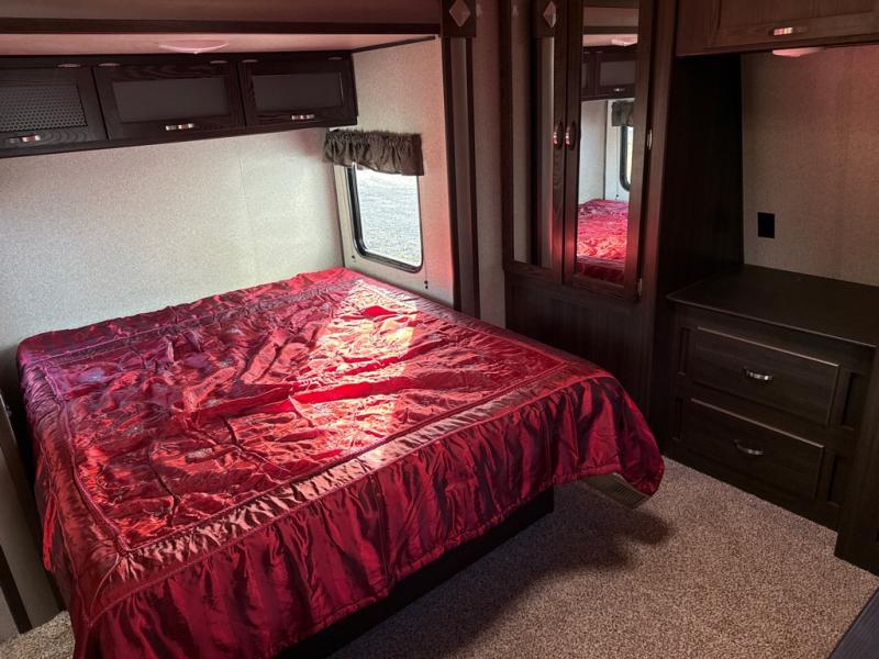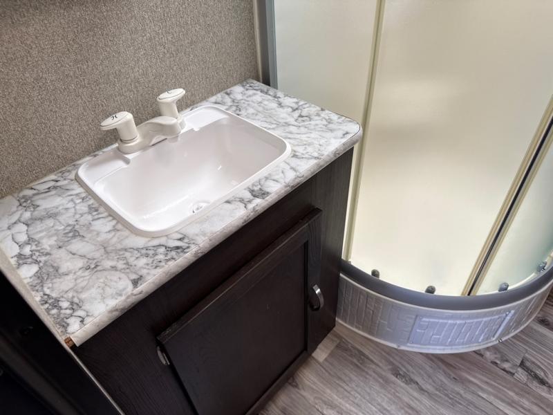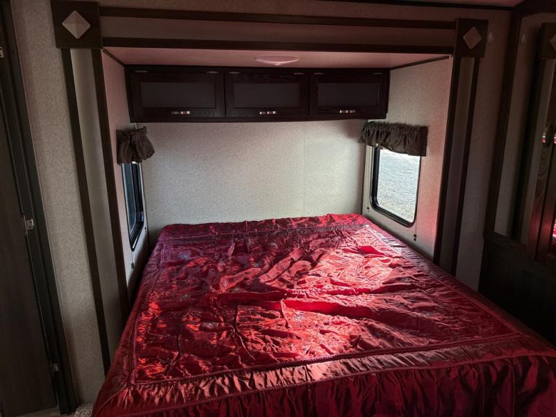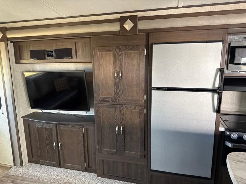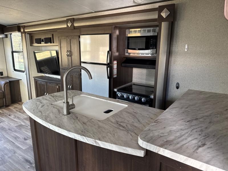 In any Keystone Springdale travel trailer, you will find premium features to make your camping experience feel like a home away from home. Some of these features are a high rise kitchen faucet, a 7 cu. ft. refrigerator, storage under the master bedroom, and an AM/FM Bluetooth CD/DVD entertainment system. These fifth wheels and travel trailers will provide you and your family with all the travel conveniences you want and expect without costing you a fortune. Each model includes a powder coated l-beam frame, cambered chassis, Lion's head nitro filled tires, and hurricane straps to reinforce the structure are just a few of the exterior/construction standards that create a unit built to last.