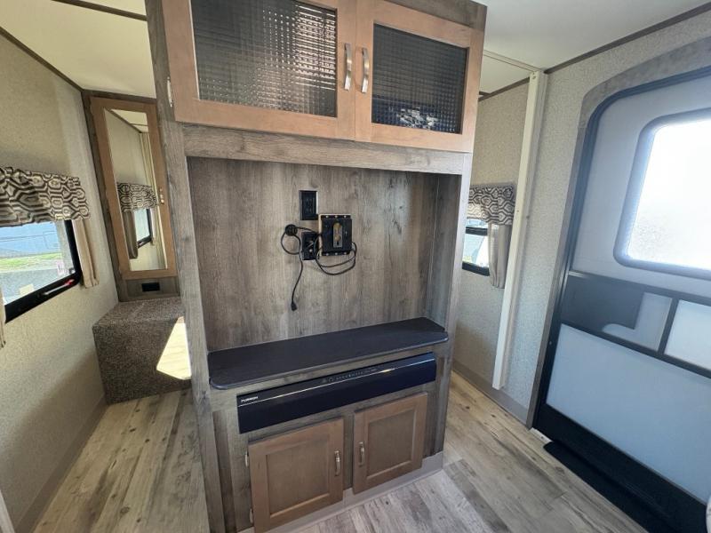 This Sprinter Campfire Edition travel trailer offers all the amenities you need to enjoy spending time away from home. Outside, you will LOVE this unit! There is an electric awning that you can put up when it is sunny outside, and you want some shade to enjoy the great outdoors. It is also super convenient to have the exterior kitchen so you can enjoy the scenery while you cook, the reason you left home! The two TVs are awesome allowing you to watch the big game indoors or outdoors. And the convenience of a full rear bath including a wardrobe for more storage, and a front master bedroom with a residential queen bed are added bonuses! Take a look around, this model will make you happy!