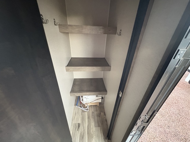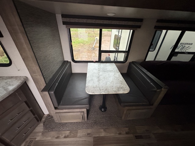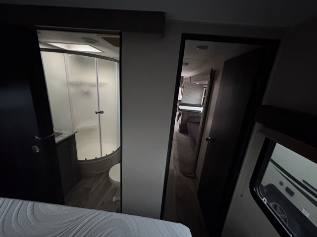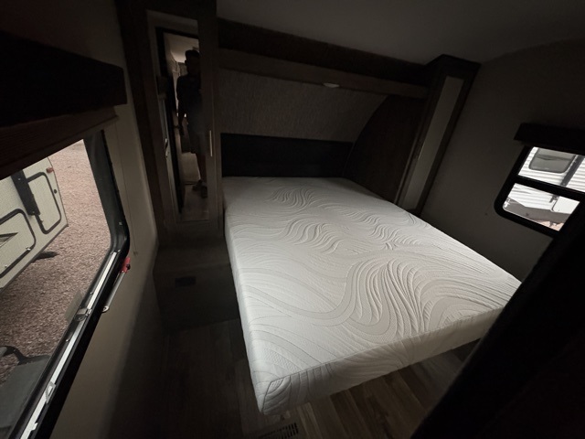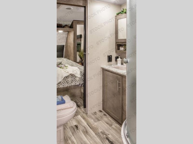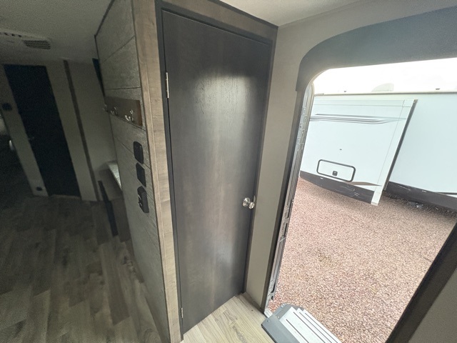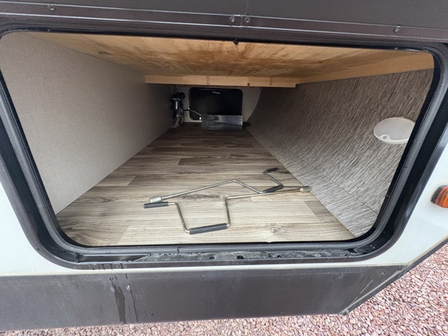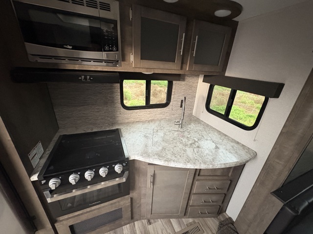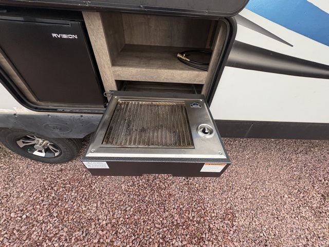 Just imagine staying at your favorite RV park with your own accommodations with a few extra features you didn't even know you would want or need. Before you enter on the flip-up solid steps you will find an outside kitchen with a capital grill as well as a trunk door for easy storage. The exterior also offers a flip-up 71" storage rack to place your bikes or totes on while traveling, you can even store a few outdoor items on the rack when you are parked at the campsite. Once inside you will appreciate the rear kitchen layout allowing you quick access inside to stay fueled for all the fun. The combined living and kitchen area allows you to make meals, watch the LED TV, and relax on the furniture. The convenient dual entry bath offers everything you will need to stay refreshed and ready for the next day. Don't forget about the bedroom's queen bed and overhead lighting. It's time to stop imagining and start living your dreams!