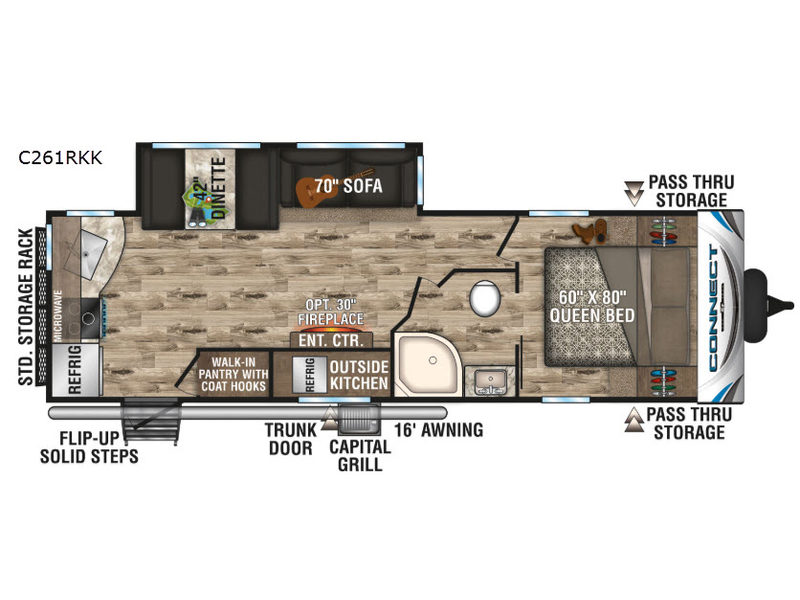 Each Connect travel trailer by KZ RV offers the Climate package featuring a heated, insulated and an enclosed underbelly for four seasons of outdoor adventure. Some of the additional highlights include wider doorways, LED motion sensor lights, residential kitchen amenities including a pantry for lots of dry goods, flush-floor slides, and sturdy flip-up main entry steps. You will also find plenty of exterior storage areas that are sizable and easy to clean, plus include extra-large radius doors with magnetic catches. It's time to enjoy the journey, get ready and choose your favorite floorplan!