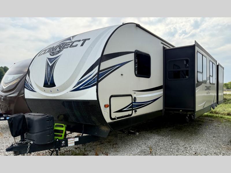 The legendary workmanship that you have always appreciated from KZ RV is clearly evidenced in its brand-new line of ultra-lightweight Connect SE travel trailers! With slide outs in every floor plan, the spacious interior feels welcoming and inviting for all who travel with you, and with all of the multimedia features that have been included throughout the Connect SE, like the stereo with Bluetooth and LED lights on the exterior speakers, you will enjoy endless hours of entertainment during each getaway. The foundation of the Connect SE is just as impressive as its interior with its one-piece seamless roof that has SuperFlex® roofing material, its UVA and UVB-resistant gelcoat Lamilux® exterior, and its 3/8" fully walk-on roof decking. You will also enjoy the beautiful interior styling that comes from the rich woodbridge maple cabinetry, hand-crafted mortise and tenon glazed cabinet doors, and residential-grade linoleum.