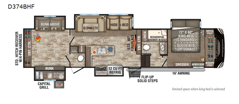 KZ Durango fifth wheel D347BHF highlights: