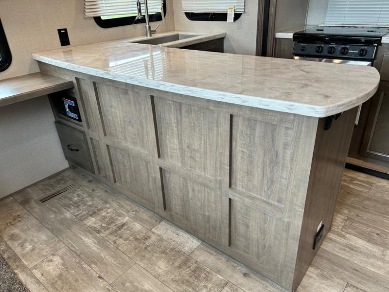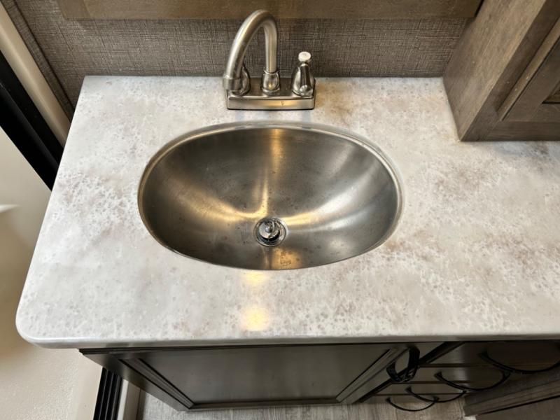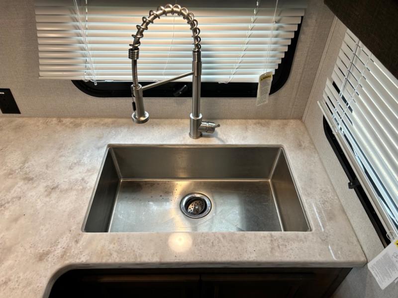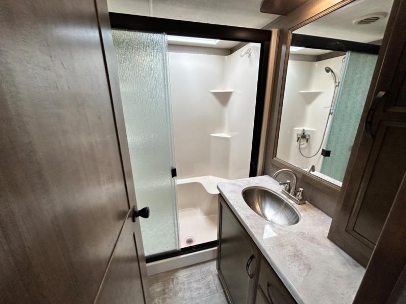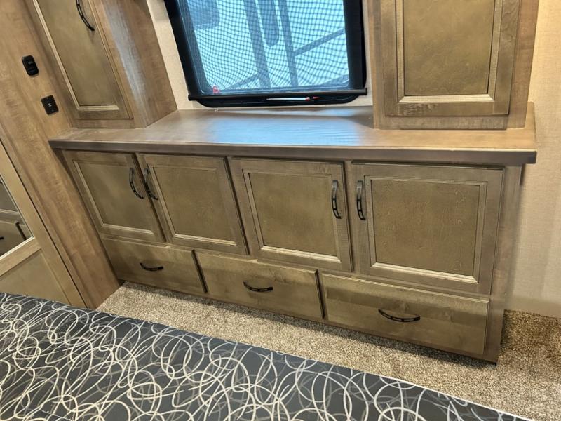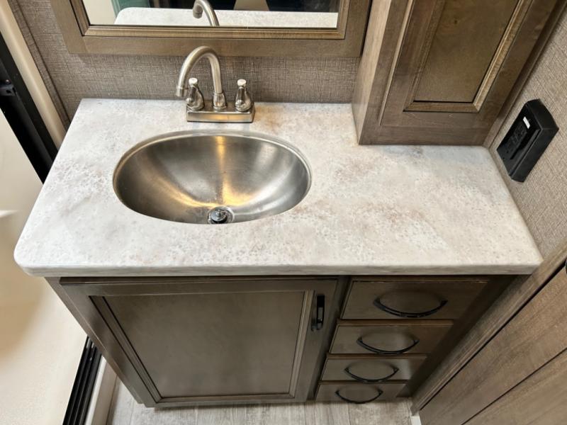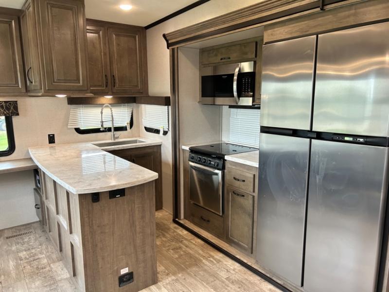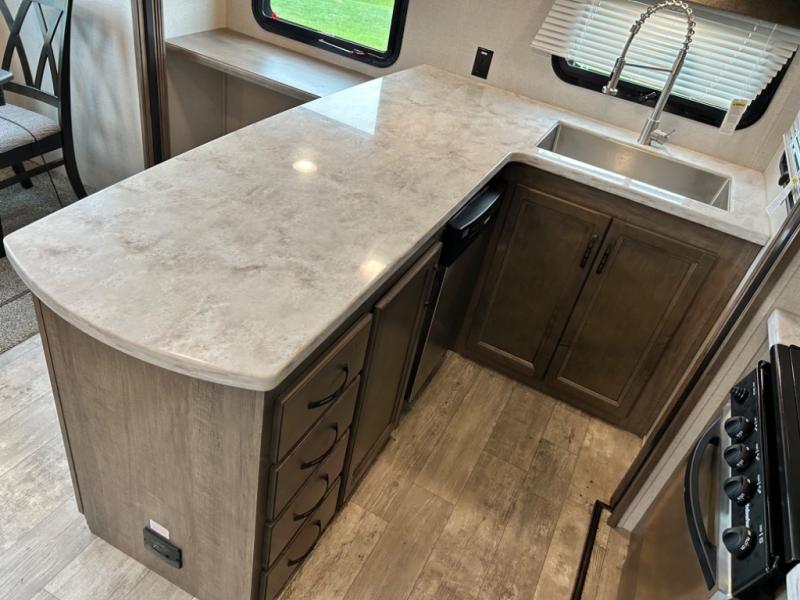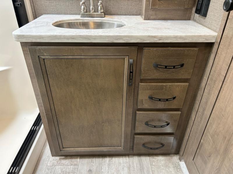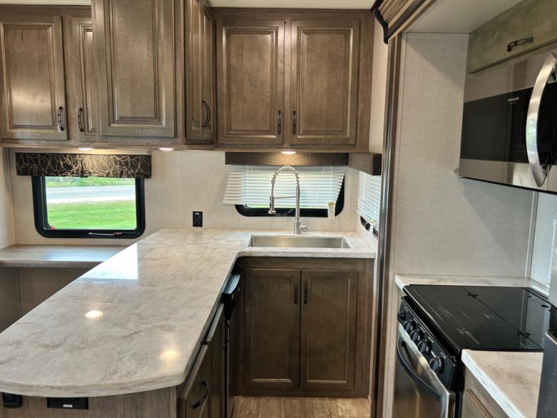 With the KZ Durango Gold fifth wheel, luxury is our name, and all-season living is our game! The Durango Gold has been built with all-weather insulation, double-insulated holding tanks, and a fully heated/enclosed underbelly. These units are also constructed with a 101" wide body, a 6-sided 100% aluminum frame, a high-gloss ivory-colored Lamilux fiberglass, and a walk-on Superflex TPO roof membrane. You also have all the comforts of home with a residential stainless steel sink, solid surface countertops, maple-glazed cabinetry, and a power vent fan.