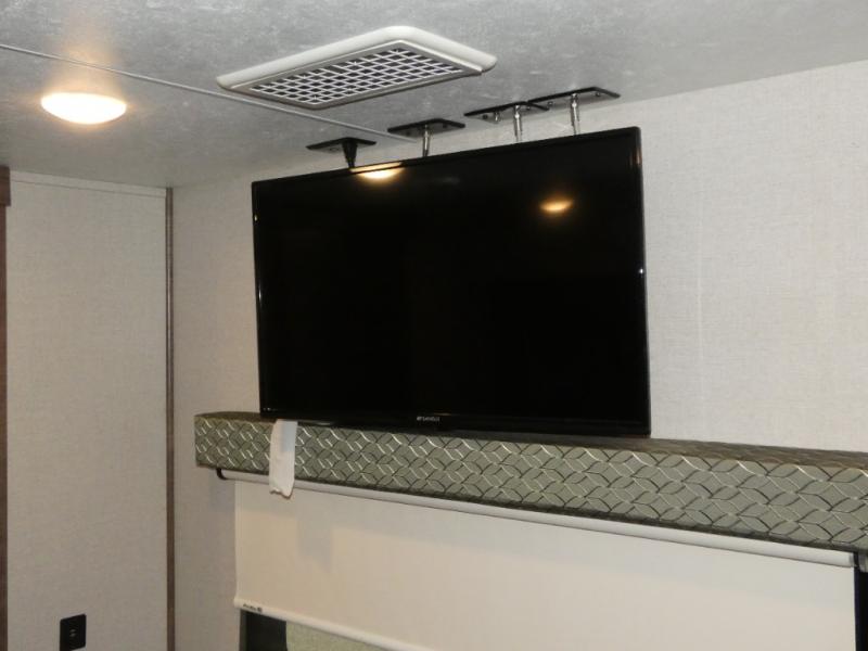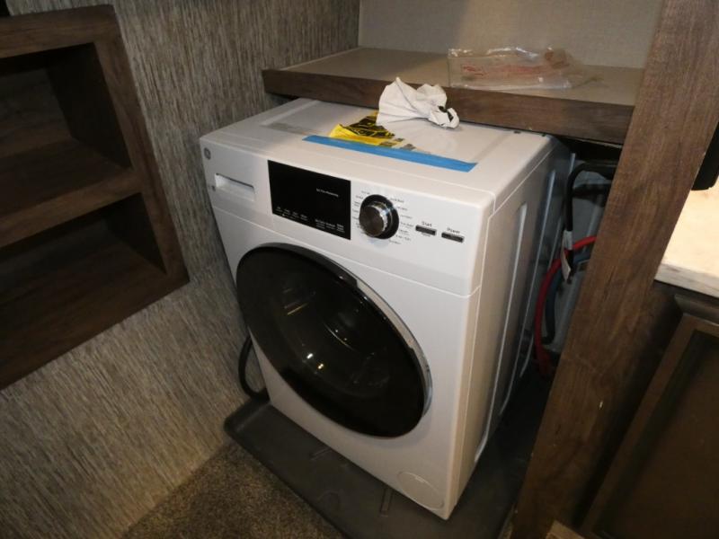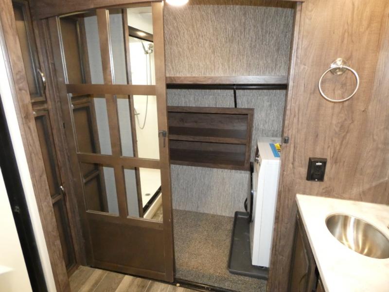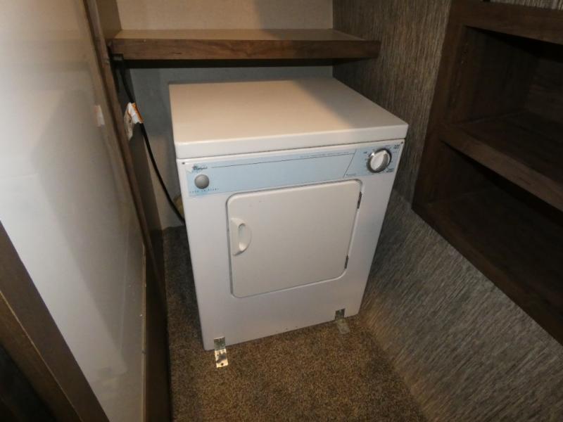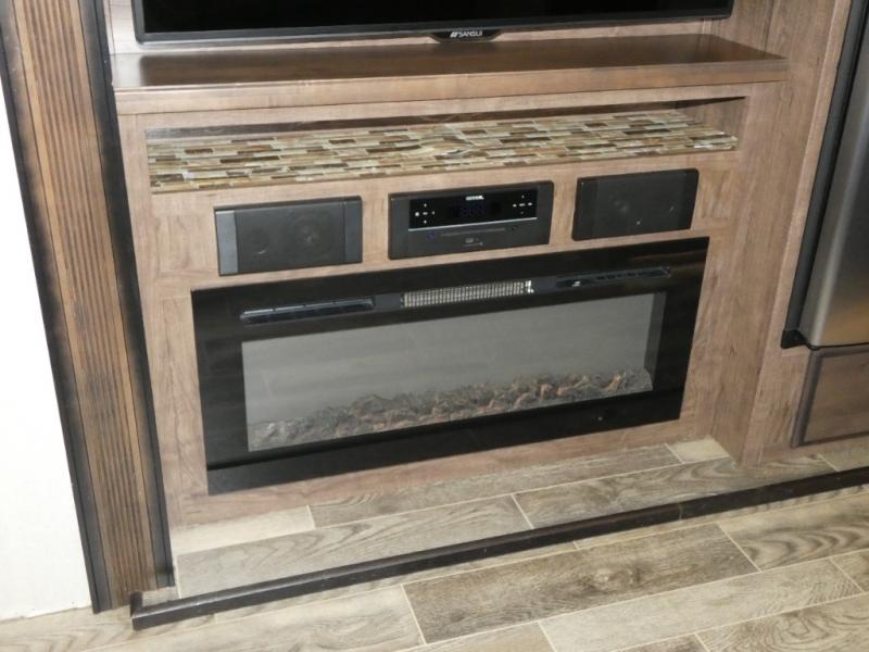 Let this KZ Durango Gold fifth wheel be your home away from home! It features a bath and a half, a 40" fireplace, and a 18' power awning with LED lights, plus you can add a second 11' power awning too. There are plenty of storage spaces inside between all of the overhead cabinets, the large kitchen pantry, and the dresser with hidden storage inside the master suite. Inside of the master bathroom there is a double-sink vanity, a shower with a seat, a linen closet, and even a large wardrobe with washer/dryer. Meal prep is made easy thanks to the kitchen island, and the dishwasher allows you to spend more time outdoors!