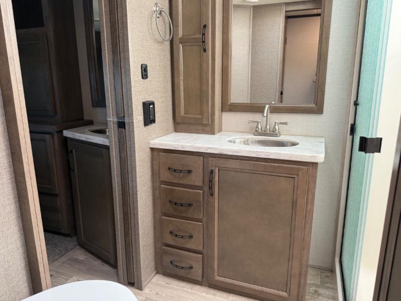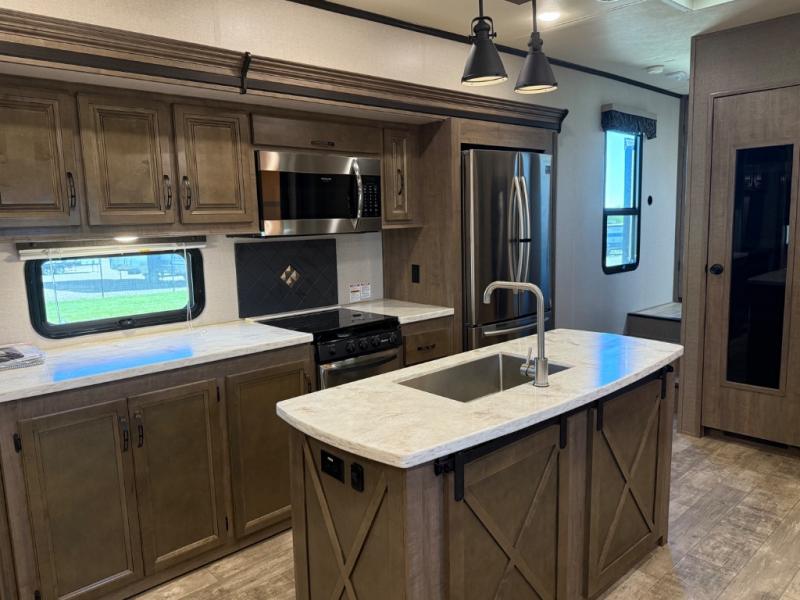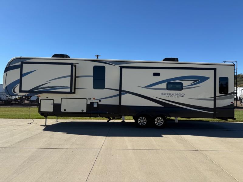 With the KZ Durango Gold fifth wheel, luxury is our name, and all-season living is our game! The Durango Gold has been built with all-weather insulation, double-insulated holding tanks, and a fully heated/enclosed underbelly. These units are also constructed with a 101" wide body, a 6-sided 100% aluminum frame, a high-gloss ivory-colored Lamilux fiberglass, and a walk-on Superflex TPO roof membrane. You also have all the comforts of home with a residential stainless steel sink, solid surface countertops, maple-glazed cabinetry, and a power vent fan.