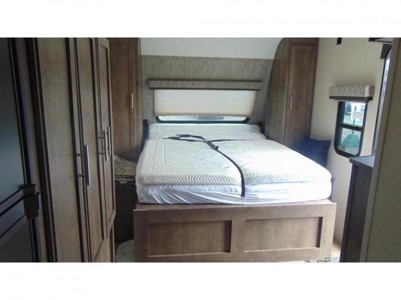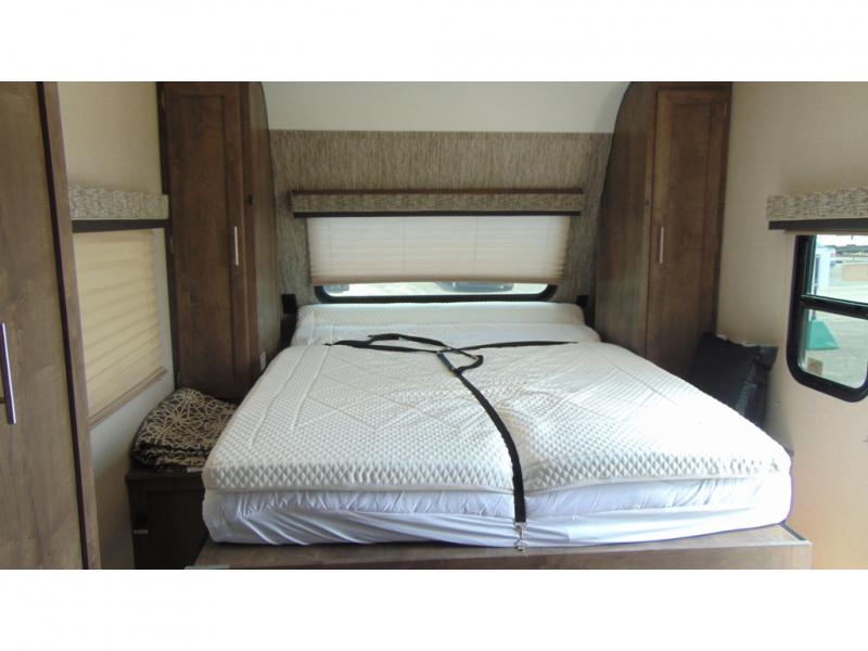 If you are looking for an escape from your mundane camping excursions, then you need this Escape travel trailer. Stop waking up with a sore back after spending a night sleeping on the cold, hard ground and wake up refreshed after a good night's sleep spent on the Murphy bed in the front of this unit. You will also have plenty of room to store your camping essentials when you travel with this trailer because it has an exterior pass-through storage for all of your larger gear, two bedside wardrobes for all of your clothing, and a linen closet to store towels and toiletries.