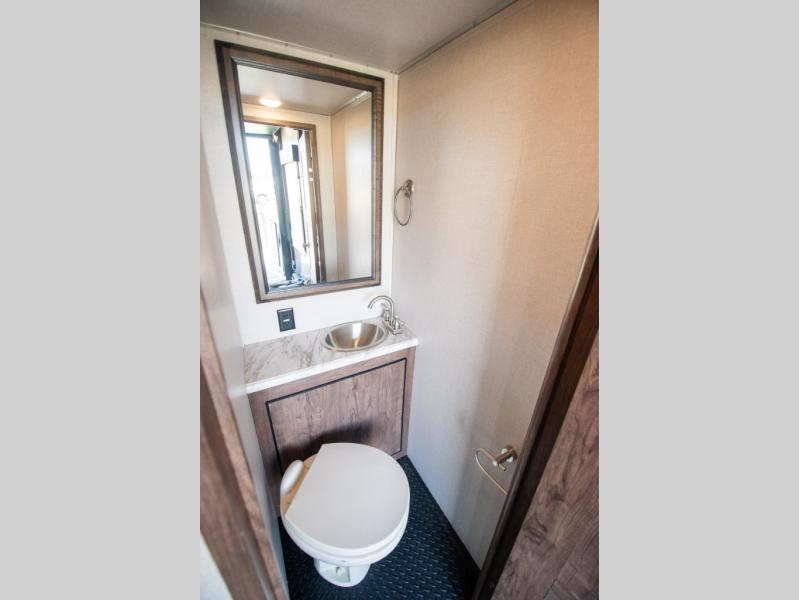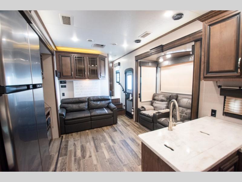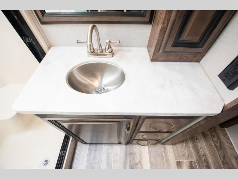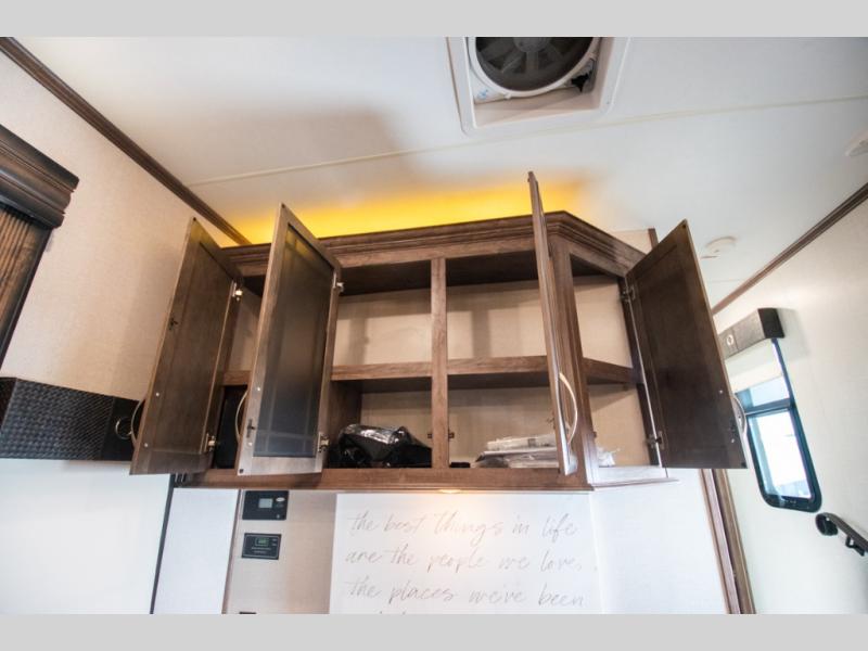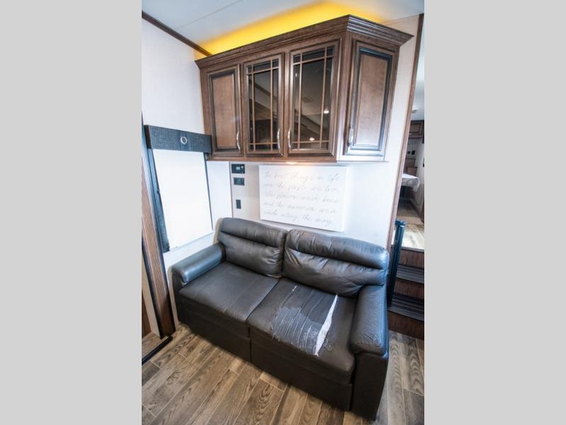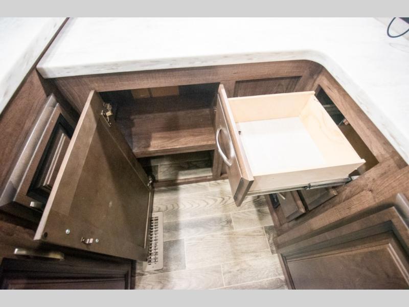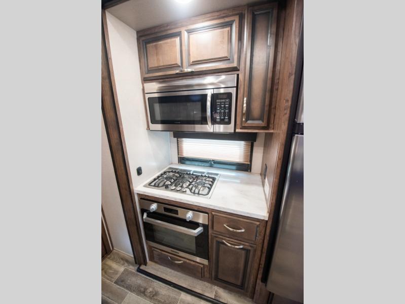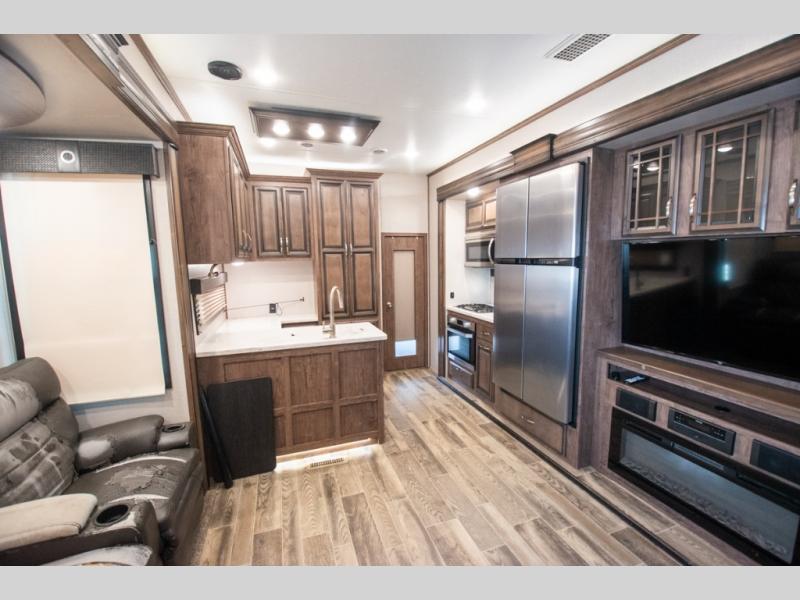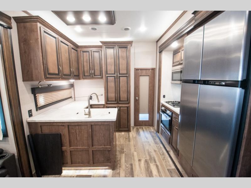 You can park and secure your toys in a 12' cargo area to travel to your favorite off-road park when you have this fifth wheel in tow. The separate garage also includes a convenience half bath, a side man door, and an optional power bed with dual sofas if you would like this area to double as extra living and sleeping space. You can even add a washer and dryer option if you like. You may decide to invite the whole gang since the main living and kitchen area also has a 40" x 96" loft bed, a sofa, and theater seats that someone may even fall asleep on. And the kitchen U-shaped counter allows you to keep everyone fueled just like the 70 gallon fuel tank will keep the toys ready to ride the whole time!