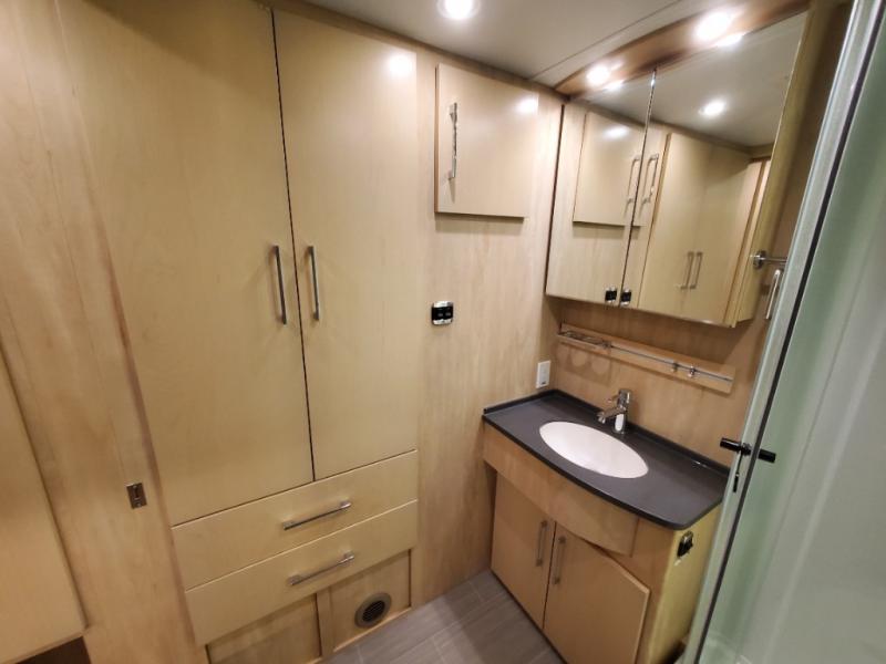 You won't find a more comfortable or accommodating coach than this Unity Class B+ diesel motorhome! With its large residential-style bathroom, you will enjoy every moment you spend cleaning up in the radius shower, and the skylight above the shower will deliver plenty of sunshine to illuminate the entire space. The Leisure Lounge is an excellent feature because it combines style with function. During the day you can host friends and family with the swivel cab chairs and flip-down table, and once the party has ended, you can rest peacefully for the evening after you've turned down the Murphy bed.