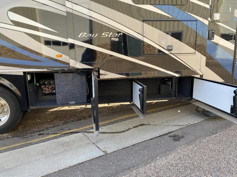 Discover the used 2019 Newmar Bay Star 3226 with full-paint exterior, Wi-Fi, satellite TV, king-bed comfort & smart leveling. Available at Campers Inn RV Johnstown, CO