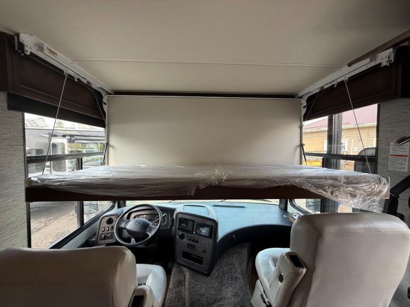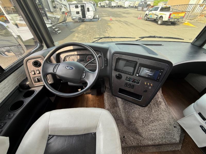 Each Canyon Star is built on a 26,000 lb. Ford F-53 chassis, and is ready to travel when you are! You can choose between two distinct exterior Masterpiece full paint finishes, two stylish interior colors, and three wood cabinet finishes. You can begin any journey from the comfort of the power adjustable driver's seat, while your traveling companion enjoys a footrest plus a stowable workstation. The galley has plenty of features from the polished solid-surface counter tops to the diamond pattern backsplash. In the kitchen you will also find a Norcold 10 cu. ft. refrigerator for your perishables and more! There is a USB charger at the passenger seat area and the dash for the driver. The road is calling your name, come answer that call with a Canyon Star!