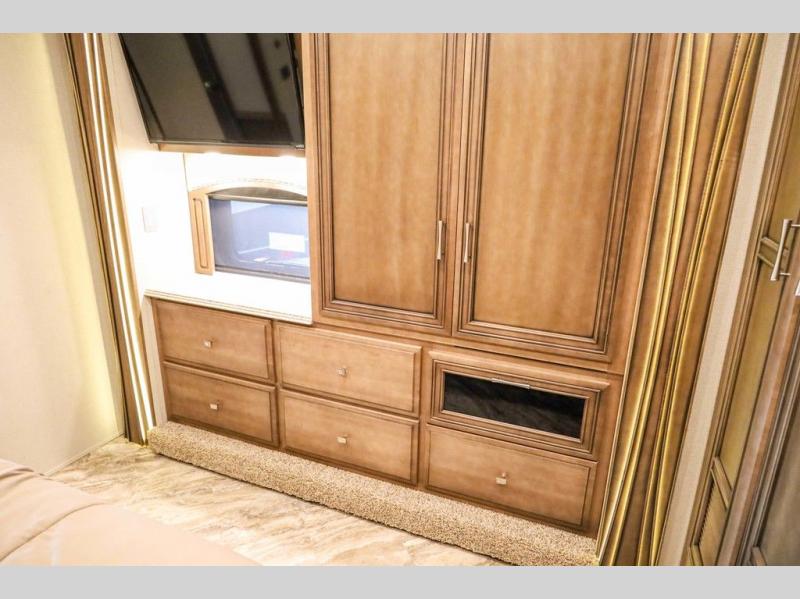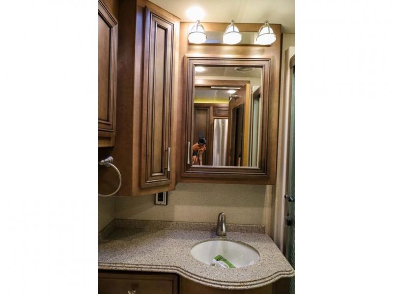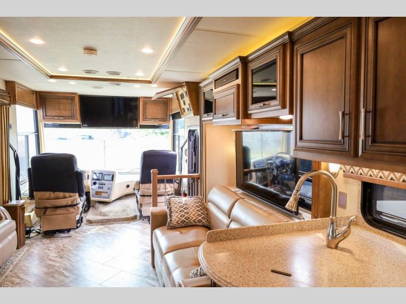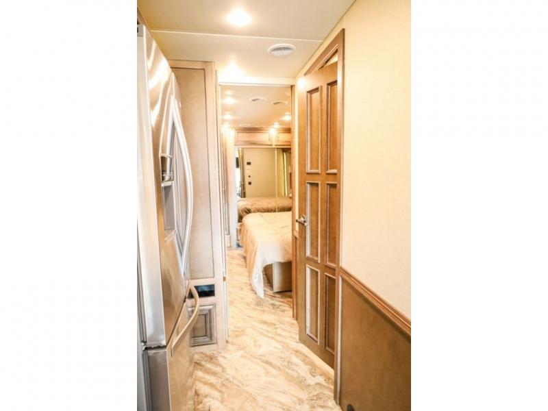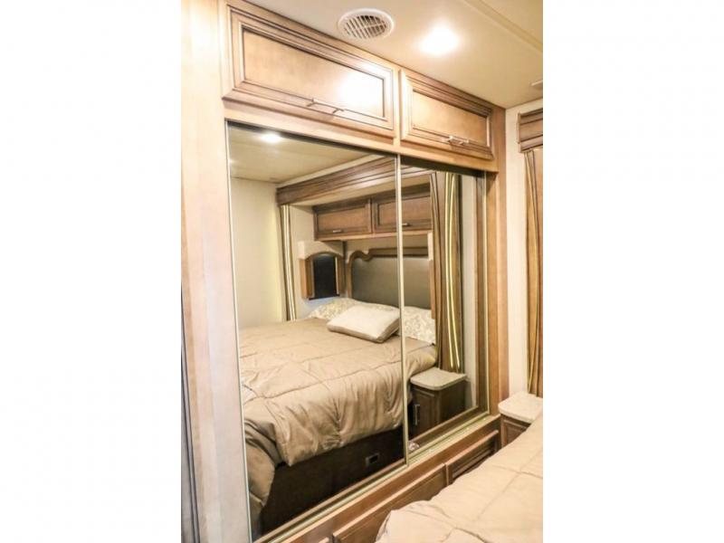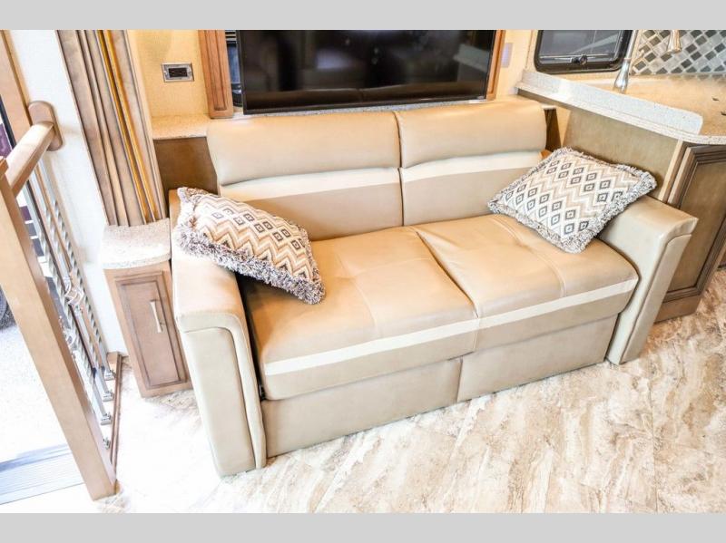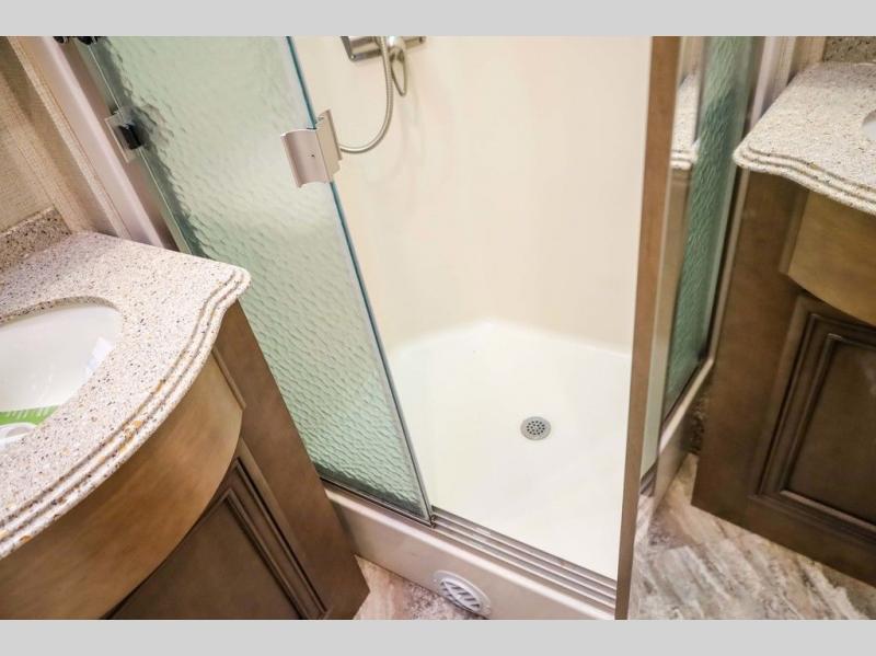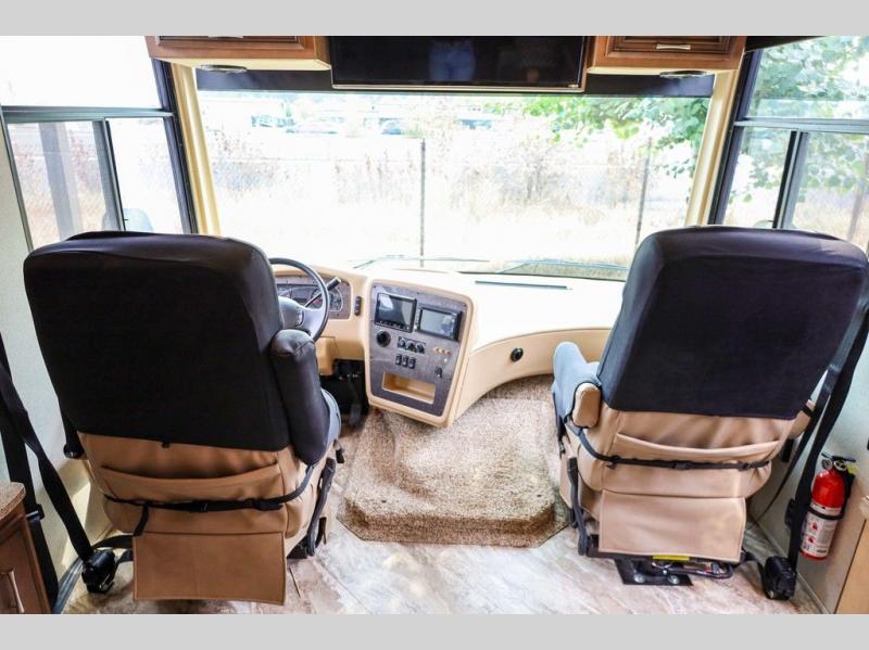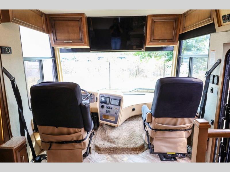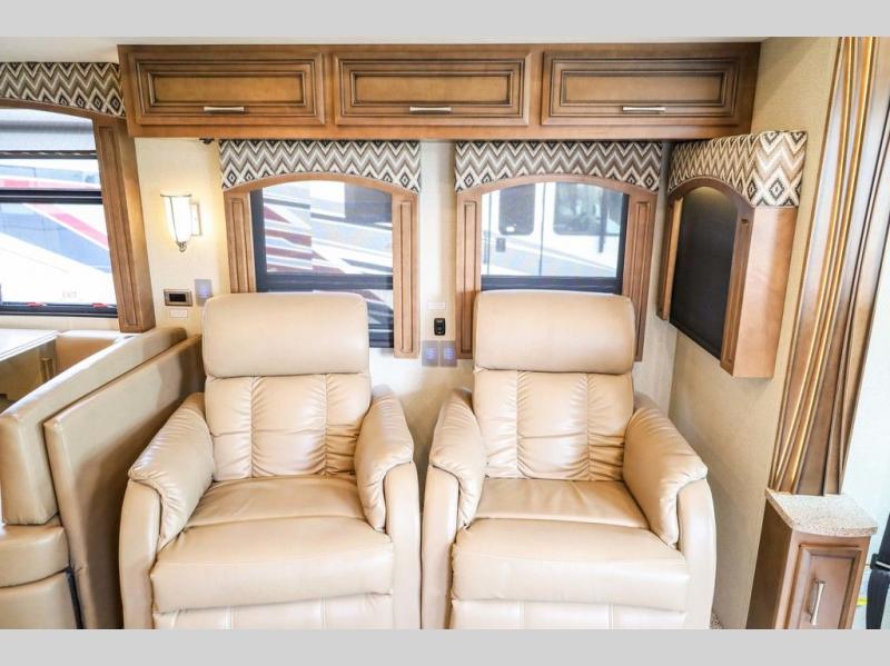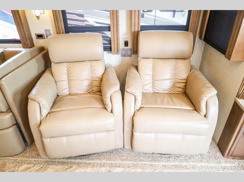 Each Canyon Star is built on a 26,000 lb. Ford F-53 chassis, and is ready to travel when you are! You can choose between two distinct exterior Masterpiece full paint finishes, two stylish interior colors, and three wood cabinet finishes. You can begin any journey from the comfort of the power adjustable driver's seat, while your traveling companion enjoys a footrest plus a stowable workstation. The galley has plenty of features from the polished solid-surface counter tops to the diamond pattern backsplash. In the kitchen you will also find a Norcold 10 cu. ft. refrigerator for your perishables and more! There is a USB charger at the passenger seat area and the dash for the driver. The road is calling your name, come answer that call with a Canyon Star!