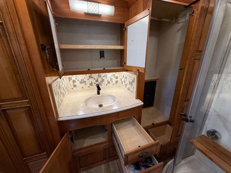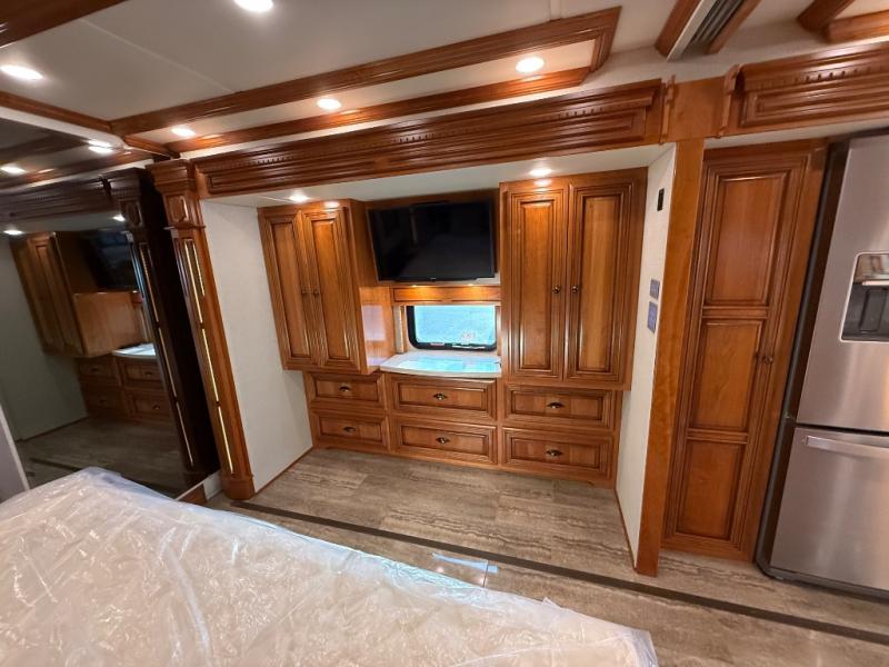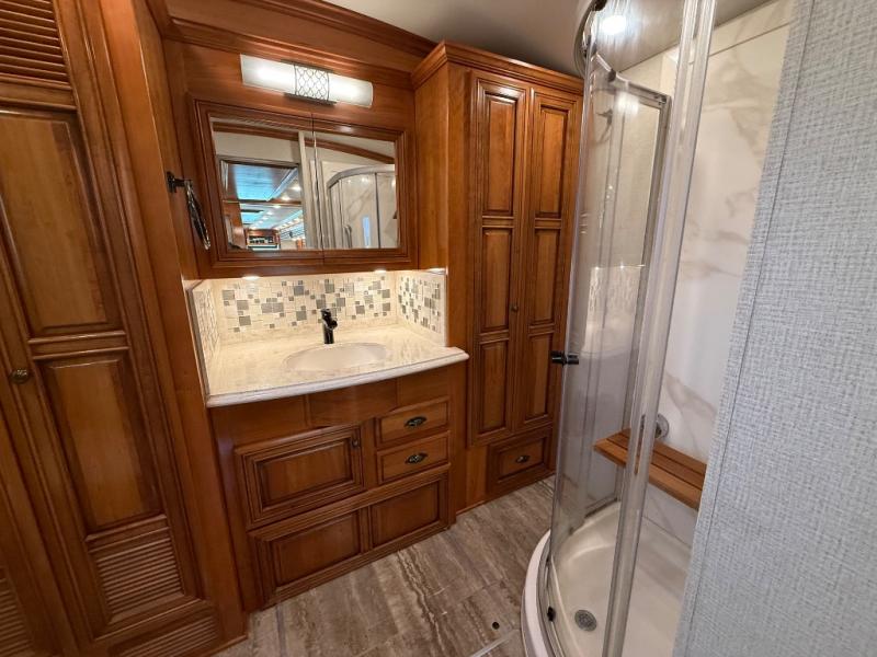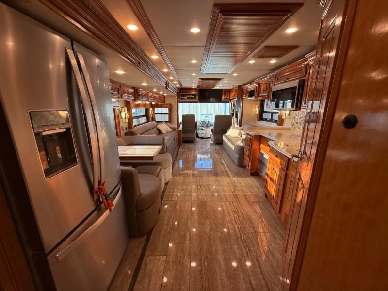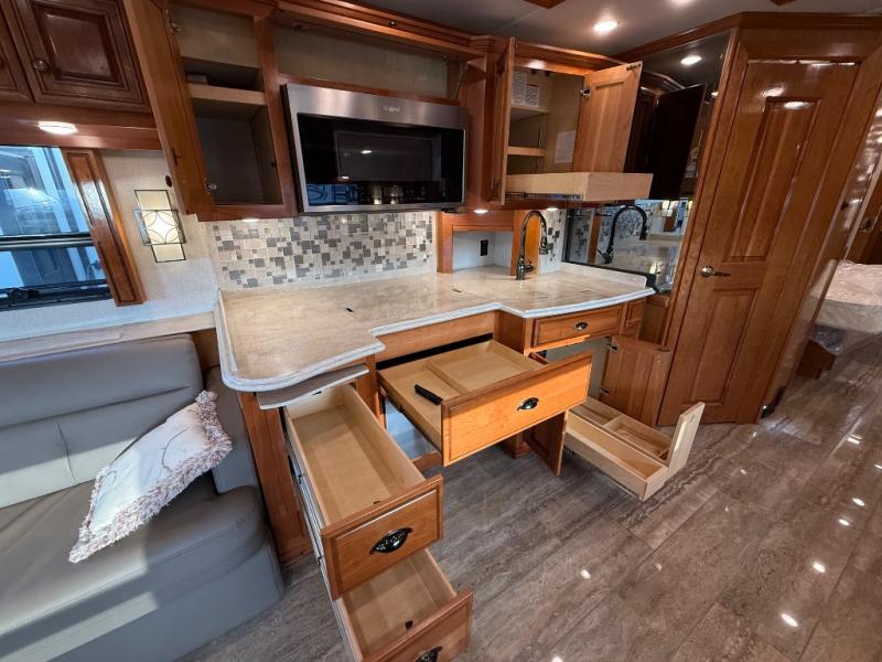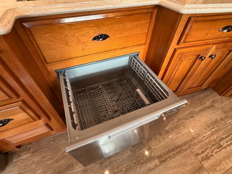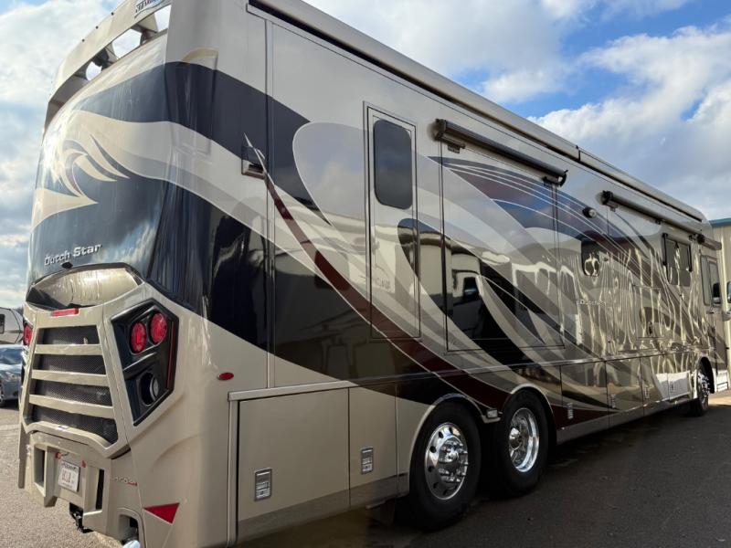 You can enjoy not only the ride but also the whole camping experience with a Newmar Dutch Star class A motor home. These models have a Freightliner V-Ride drive axle suspension as well as a Comfort Drive steering with power column. From the minute you step inside these models you will be impressed with the Bermuda glazed Maple hardwood cabinets to the solid surface counter tops in the kitchen, bathroom, and bedroom. At night you can find rest and comfort on the plush pillow top mattress, and throughout each model you will enjoy beautiful porcelain tile floor in the kitchen, bathroom, bedroom, and living area. Come begin the trip of a lifetime with a Dutch Star class A diesel motor home!