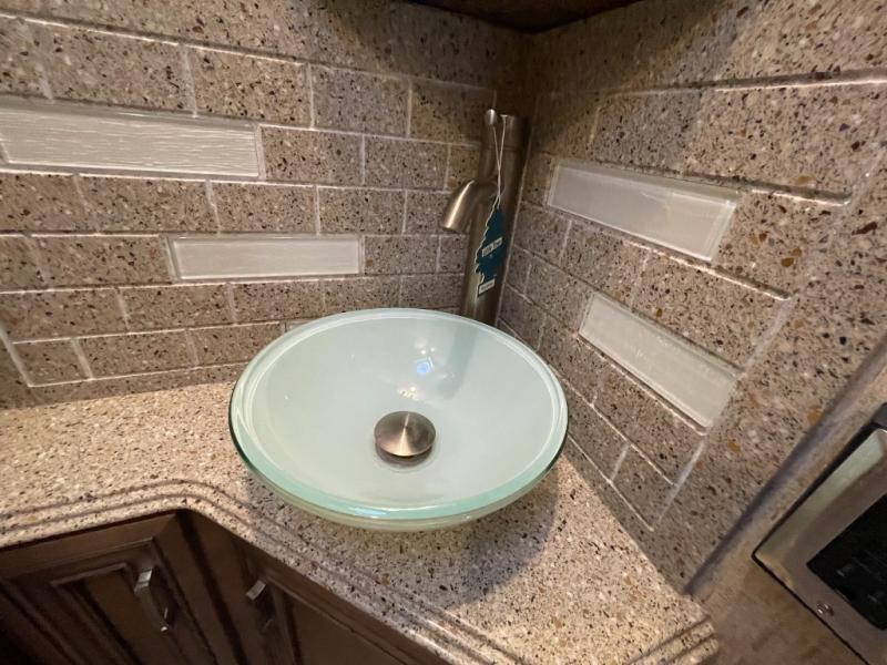 Full wall slide; Porcelain Tile; Maple cabinetry