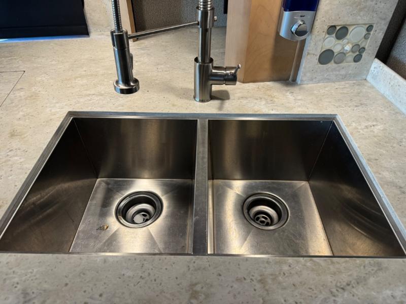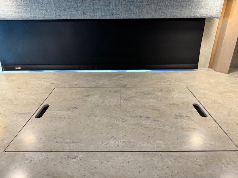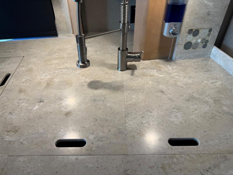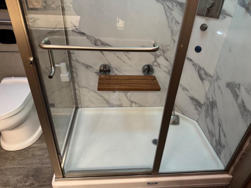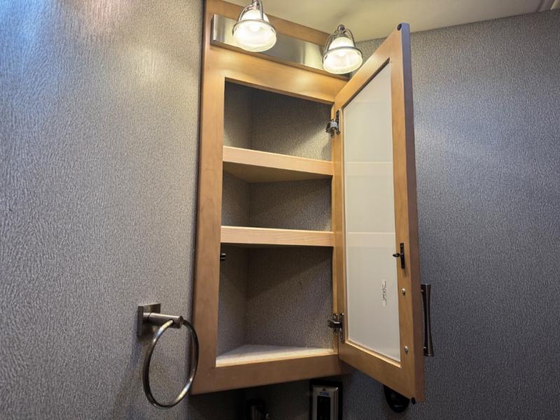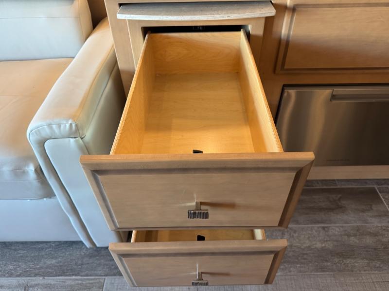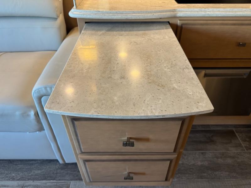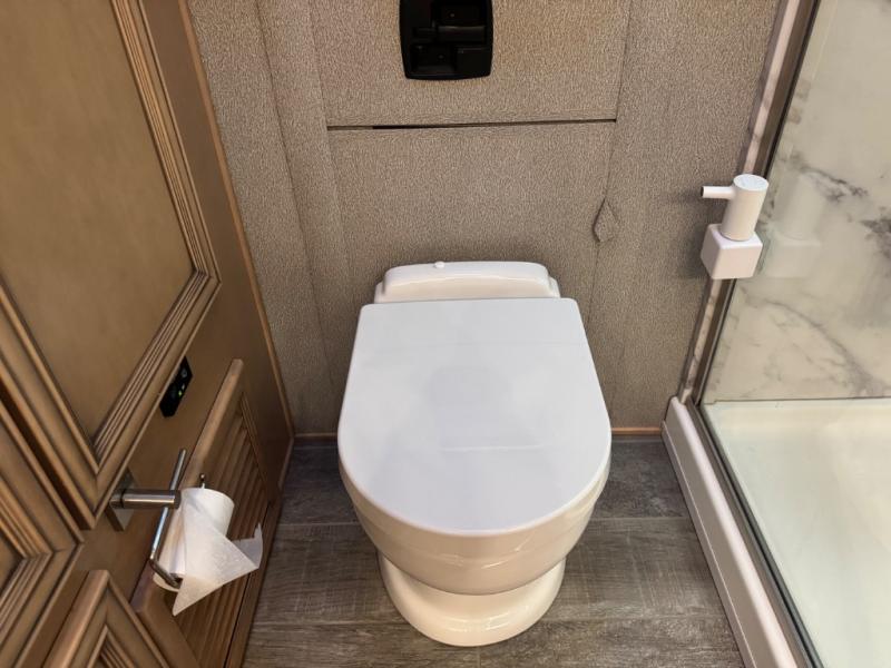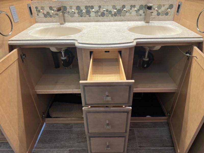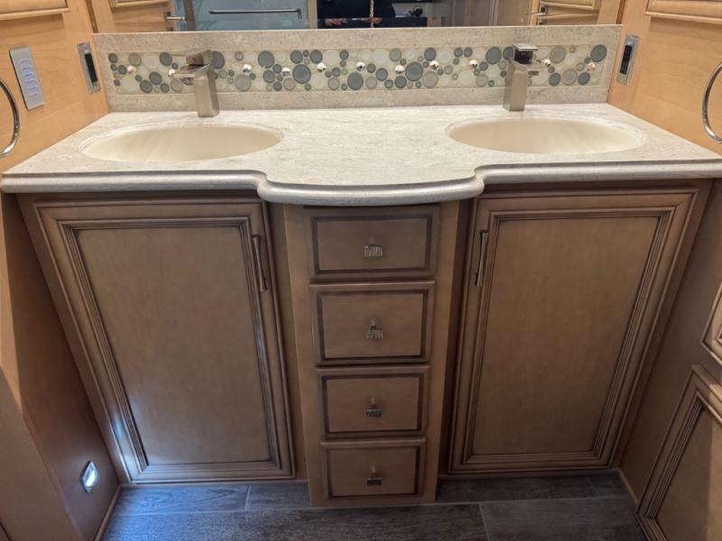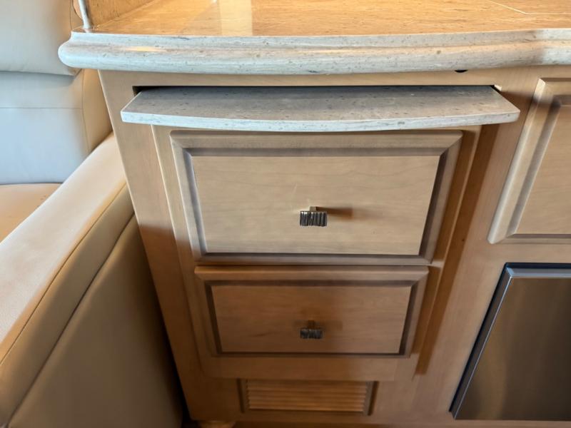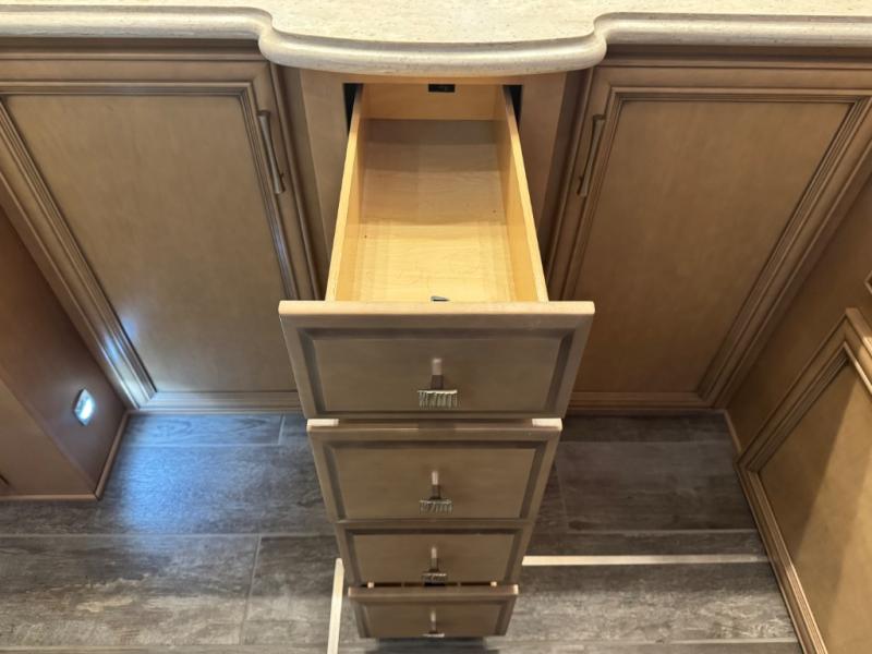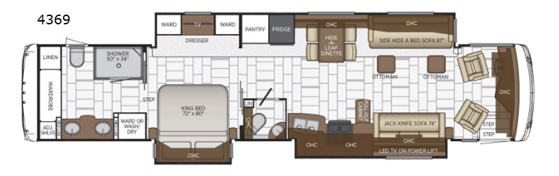 Newmar Ventana class A motor home 4369 highlights: Master Bathroom Suite Half Bathroom King Bed Free-Standing Table Come enjoy any road trip with this triple slide out Ventana 4369 class A motor home! You will find plenty of room to move around since there are triple slide outs plus there is so much storage with the overhead cabinets. Enjoy your meals at the free-standing table plus just before you come to the bedroom there is a convenient half bathroom. In the bedroom you will find a king bed plus two wardrobes and a dresser for your clothes. The master bathroom has plenty of storage space as well as a 50" x 34" shower and two sinks! This model is available with a Spartan chassis. For true comfort and relaxation on any trip whether you are traveling near or far you will want a Newmar Ventana class A diesel motor home. These models are a cut above the rest with frameless double-pane tinted safety glass windows and a skylight above the shower which adds plenty of natural light. You will love the Bermuda Glazed Maple cabinets and the polished solid surface counter tops in the kitchen. When you need to get a little work done then simply set up the passenger seat workstation. The polished porcelain tile floor in the kitchen, bathroom, and living room is beautiful, easy to clean, and durable! Get ready for any adventure with a Newmar Ventana!