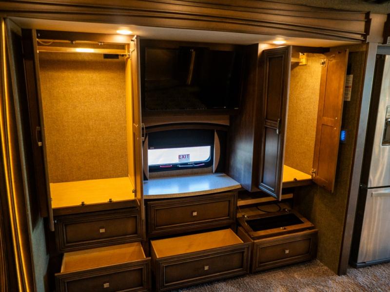 This Ventana LE 3709 will have you thinking about becoming a full-timer each time you take it out of storage. The kitchen offers everything the cook will need to make meals for a weekend or everyday if you choose not to eat fast food. Just imagine visiting with other camping friends on a hot summer day in the main living area. You can offer them seating on the 74" jack-knife sofa, the captain's chairs that swivel, and the booth dinette all while watching the LED TV on a power lift. The sofa and dinette also offer extra sleeping space when needed. The walk-through bedroom offers a cozy queen bed, storage, another LED TV, and access to the rear full bathroom. Come see other highlights like the space saving doors, the radius shower, and the half bath.