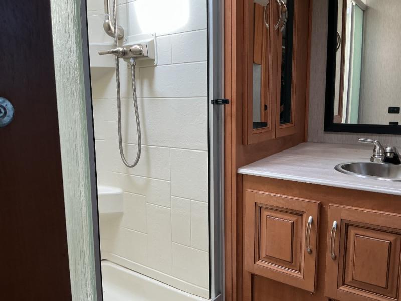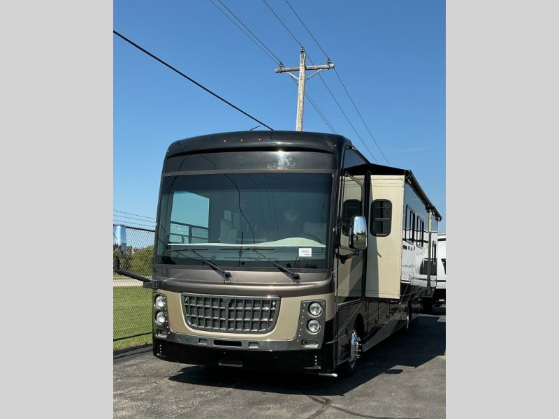 Get out on the road and experience luxury in this Evoque Class A diesel motorhome! You will love how accommodating it will be to have both a full and half bath when it's time to get ready in the morning, and the three slides open up the interior so that you have room to enjoy time together when stuck inside on a rainy day. The master suite will certainly feel relaxing as you unwind at the end of a long day, and you will look forward to watching your favorite movie before bed with the 32" LED TV in the bedroom or the 40" LED TV in the living area.