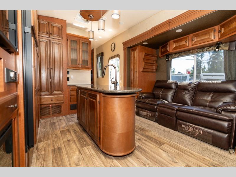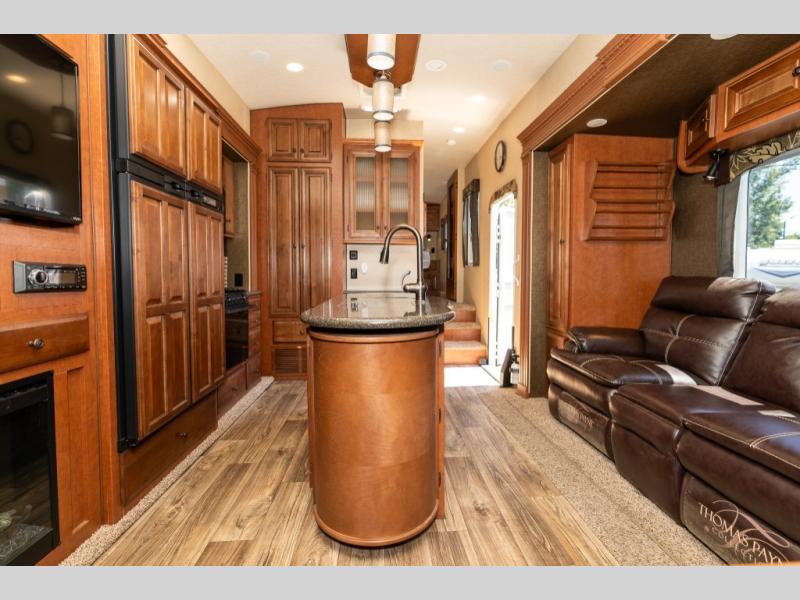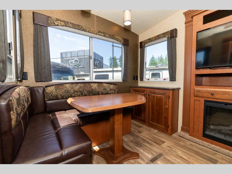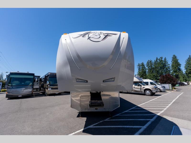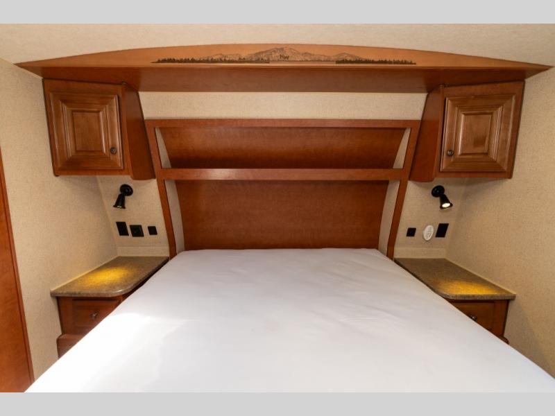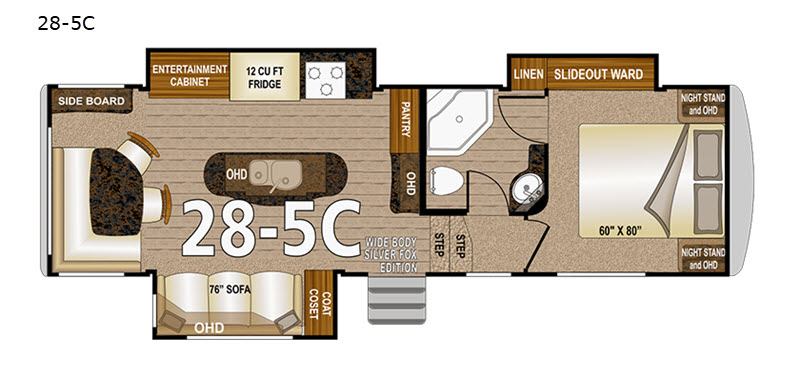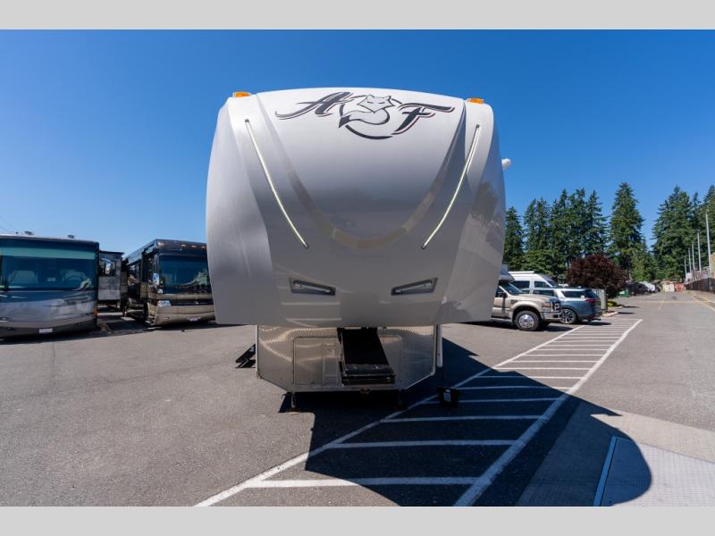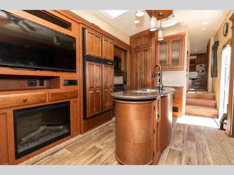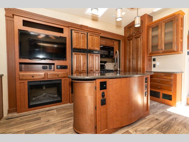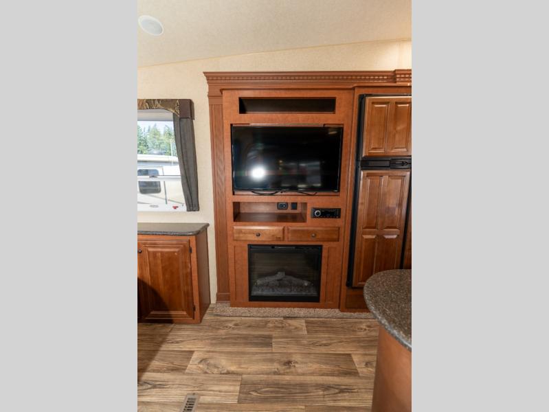 Are you looking for a spacious RV? Then this is the model for you! This Arctic Silver Fox Edition 38-5C fifth wheel by Northwood has three slides, plus there are several eye catching features such as a kitchen island, an optional fireplace, and an L-shaped dinette with two chairs! Some other neat features this fifth wheel has to offer are the 76" sofa, the coat closet, the 12 cu. ft. refrigerator, and the exterior shower. When you're ready to hit the sack, head into the front private bedroom and enjoy a good night's rest on the queen bed with nightstands and overhead cabinets on either side of the bed, plus a slide out wardrobe and an entrance into the dual entry bath!