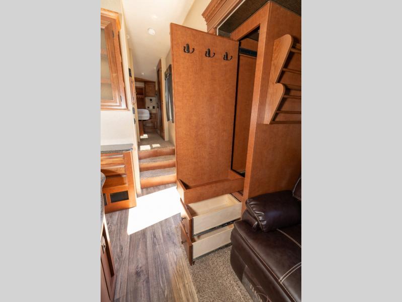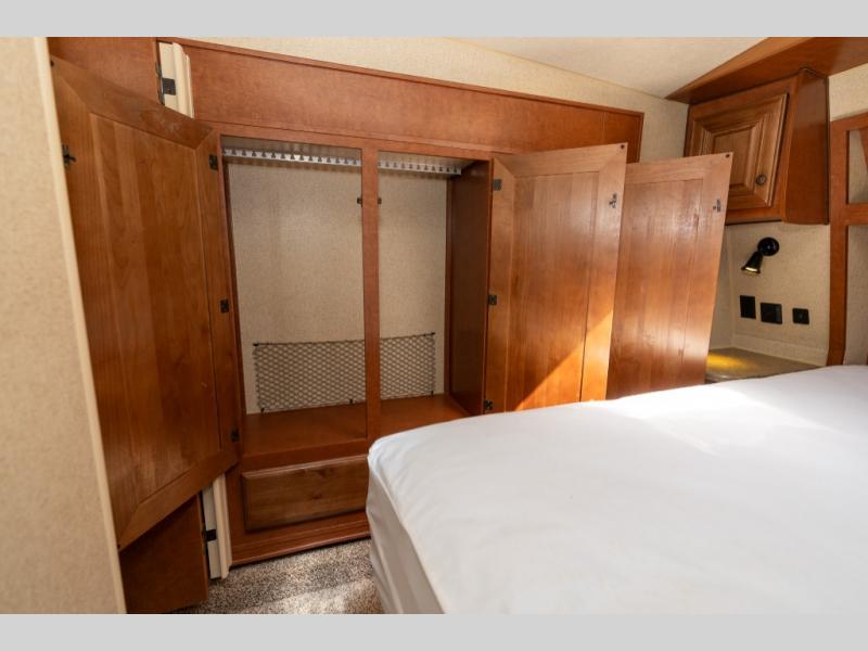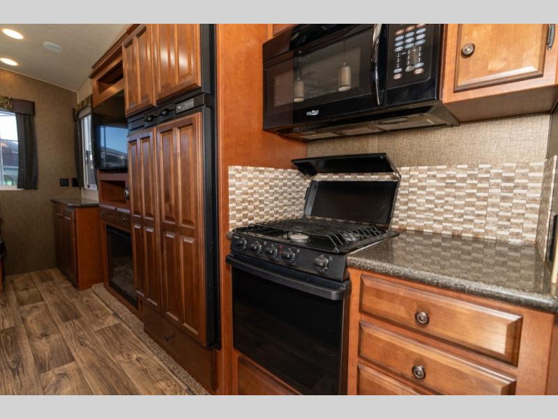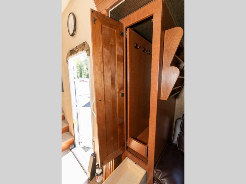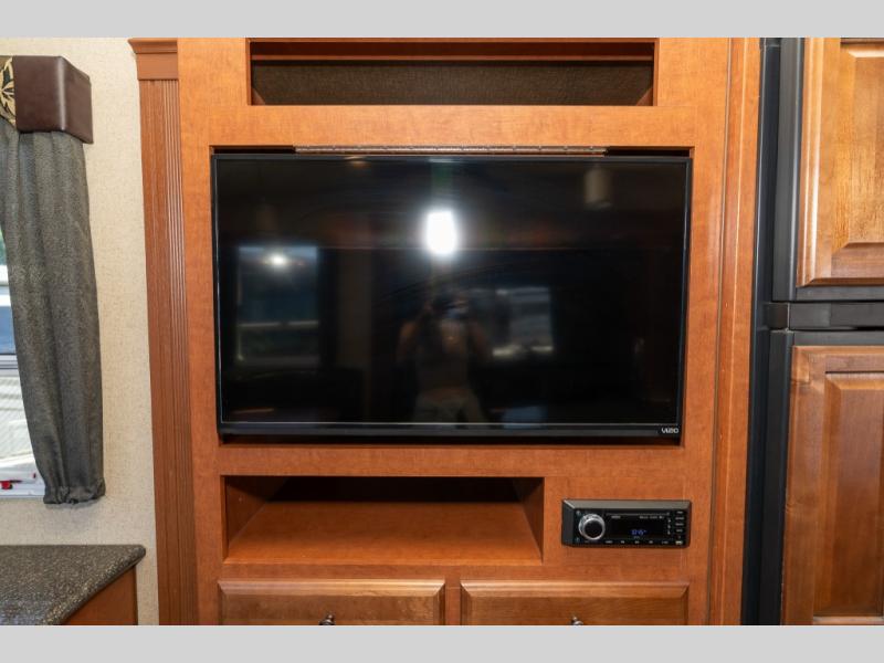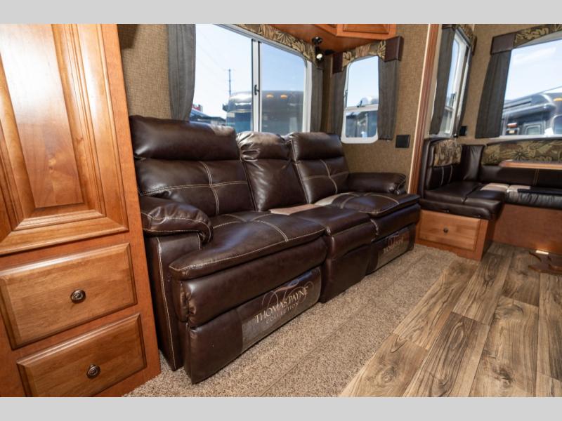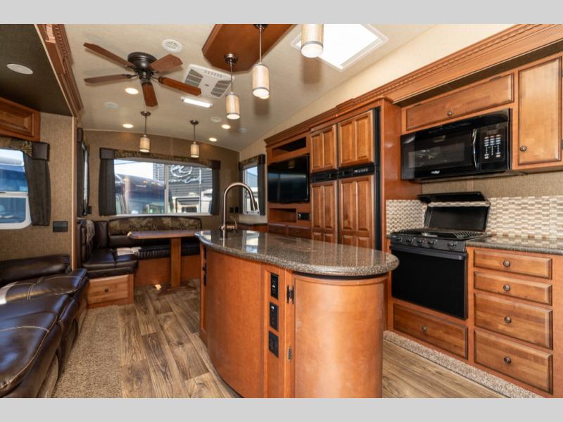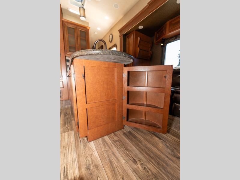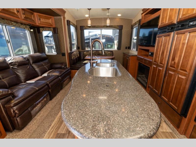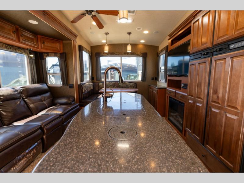 Are you looking for a spacious RV? Then this is the model for you! This Arctic Silver Fox Edition 38-5C fifth wheel by Northwood has three slides, plus there are several eye catching features such as a kitchen island, an optional fireplace, and an L-shaped dinette with two chairs! Some other neat features this fifth wheel has to offer are the 76" sofa, the coat closet, the 12 cu. ft. refrigerator, and the exterior shower. When you're ready to hit the sack, head into the front private bedroom and enjoy a good night's rest on the queen bed with nightstands and overhead cabinets on either side of the bed, plus a slide out wardrobe and an entrance into the dual entry bath!