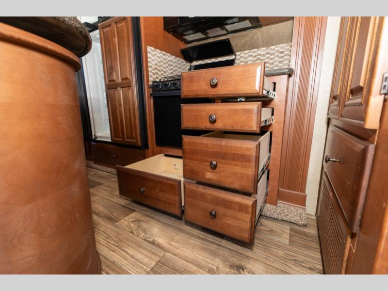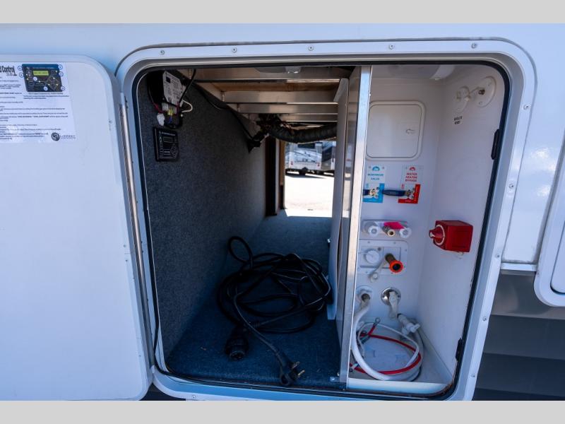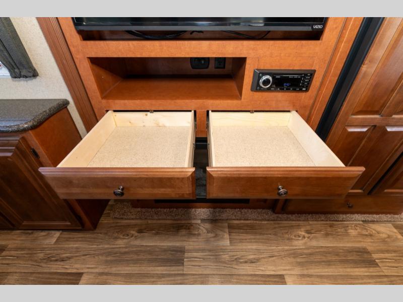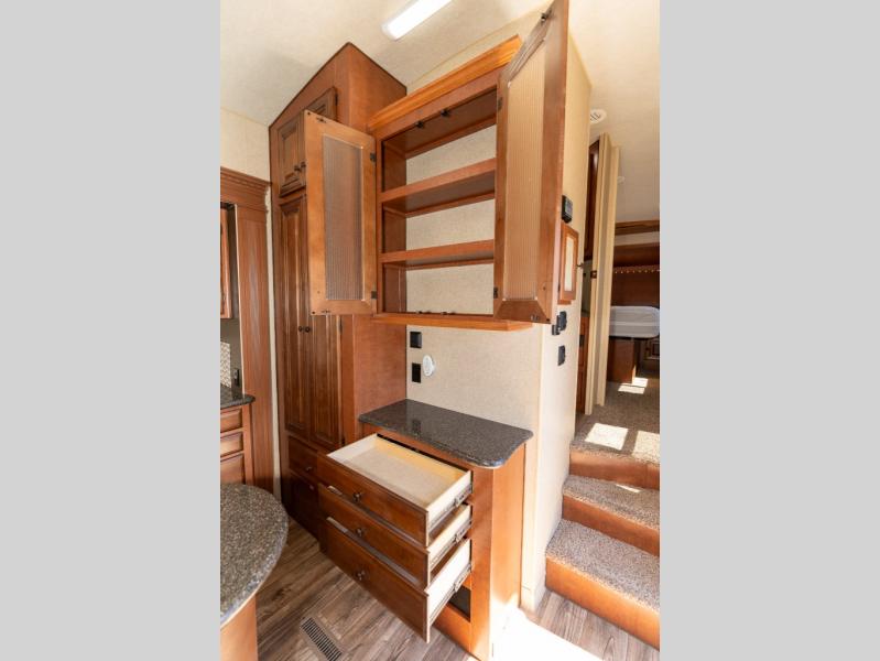 In any Northwood Arctic Silver Fox Edition, you will find a fifth wheel that is ready to take you on your wildest of adventures and still stand tall! Each Arctic Silver Fox offers an abundance of at-home features like the solid surface kitchen countertops, the 10 cu. ft. refrigerator with multiple panels, the USB charging ports on both sides of the bed, and the LED lighting, plus an interior command center. Along the exterior you will find more features that will make your camping experience even better, like the exterior shower, the 20 Watt solar panel, and the Carefree Travl'R 12V LED awning, plus SLAM latch luggage doors with magnetic luggage door catches! There are also plenty of options available for you to add for even more entertainment and convenience. Some of these options are the WiFi extender, the Winegard Carryout G2 + Sat Dish (Dish/Direct), the rear view camera, and the 15K air conditioner with ducting. So, make the most of your next camping trip with one of these Northwood Arctic Silver Fox Edition fifth wheels!