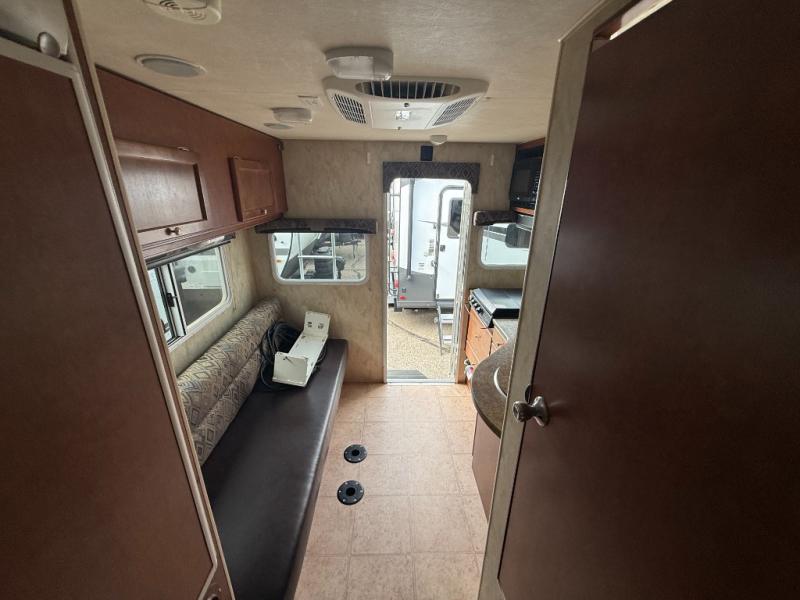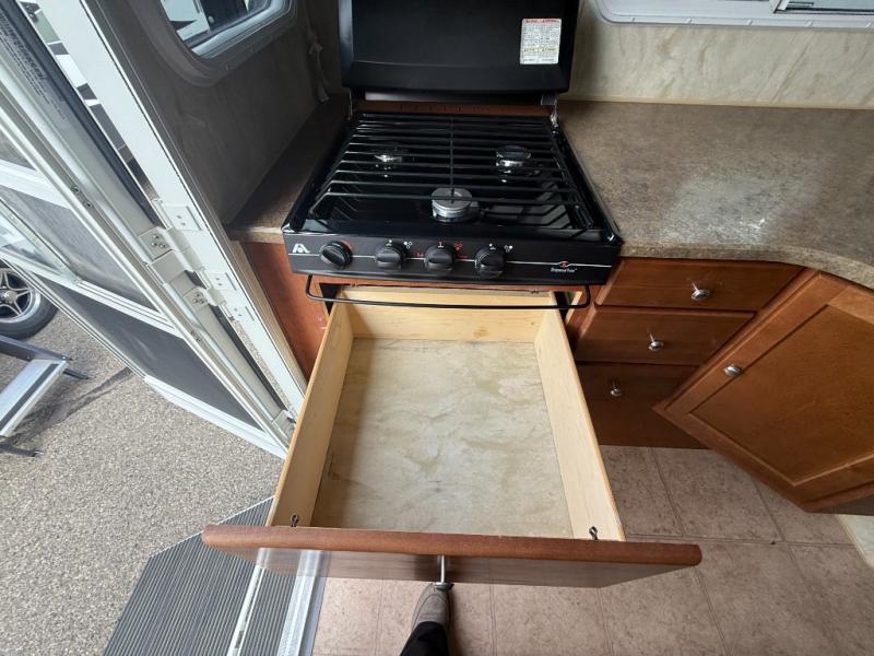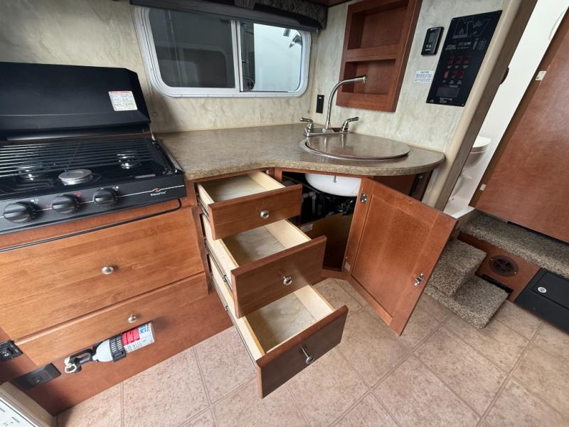 If you're wishing to escape the hustle and bustle of everyday life then this Wolf Creek truck camper is just what you need! You will find a U-shaped dinette to your immediate right for enjoying your meals at, plus there is overhead storage to keep things neat and organized too. Along the side of the dinette, you will also find a 5 cu. ft. refrigerator to keep all of your perishables cold and fresh. Along the opposite side, you will love the three burner range and round sink for preparing and cooking up light meals and snacks, plus a microwave oven for even quicker meal prep. There is also a wet bath with a toilet, a shower, and a sink for added conveniences just beyond the kitchen area. If you select the short bed option it is also generator ready and you can add the optional 2.5 Onan LP generator, plus so much more!