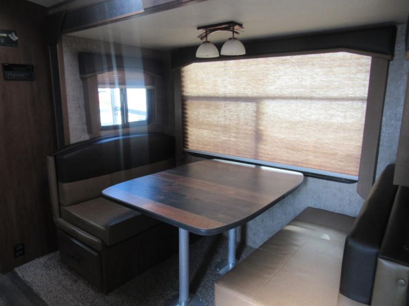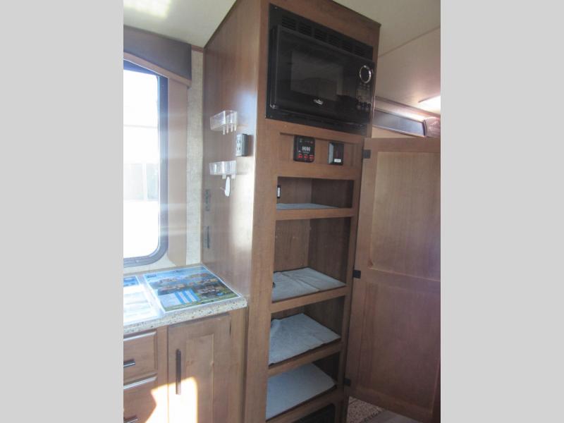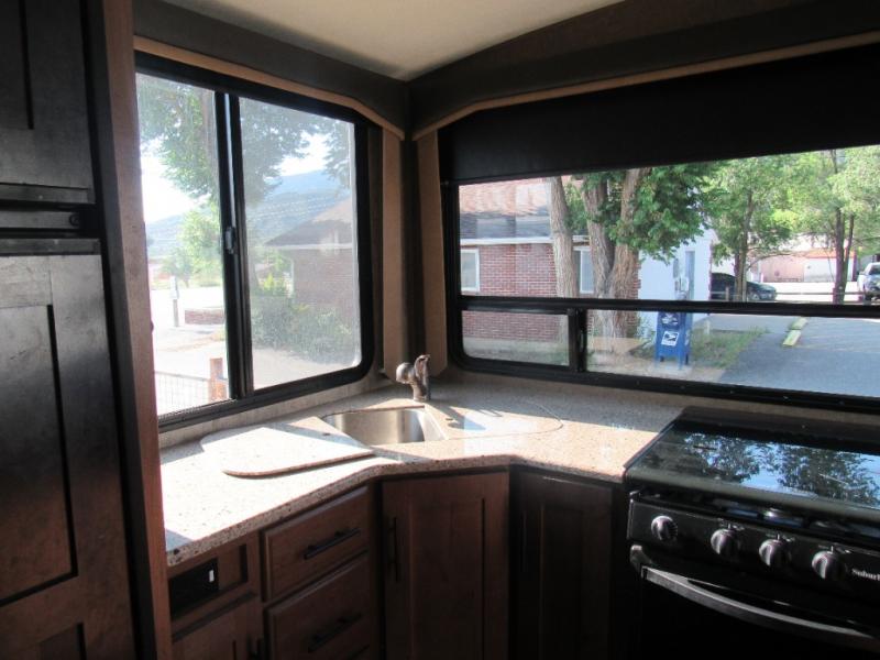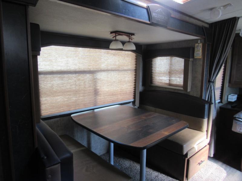 Open up your adventure options with this Creek Side Mountain Series travel trailer! You will be able to wake up and take in the majestic scenery through the surrounding windows in the rear kitchen as you start that first pot of coffee, and afterwards, you can sit down at the Mountain dinette with your bacon and eggs and feel the warm sun coming through the skylight above. Get cleaned up for the day in the full bathroom and grab a fresh pair of clothes from the bedside wardrobes.