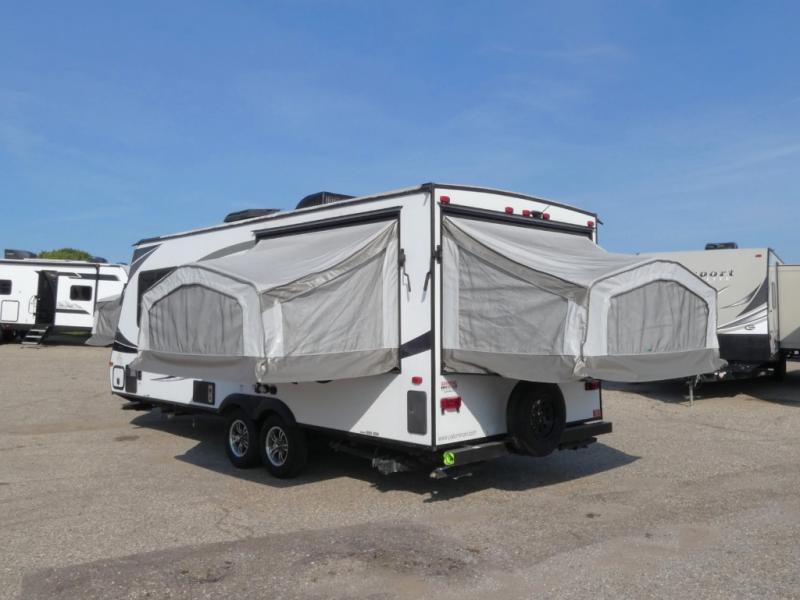 Palomino has equipped the SolAire Expandable with several indulgent amenities. The skylight in the kitchen will keep the trailer feeling open and bright as you go about your day, and if that doesn't bring in enough sunshine, you can simply switch on the LED lights throughout the trailer for an extra boost of light. The USB charging station makes it possible for you to keep your modern electronics full of battery life, even in the great outdoors. These models feature a power smart jack, allowing you to set up camp easily and quickly so you can enjoy the great outdoors with your family.