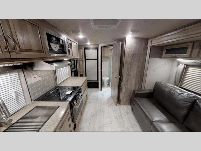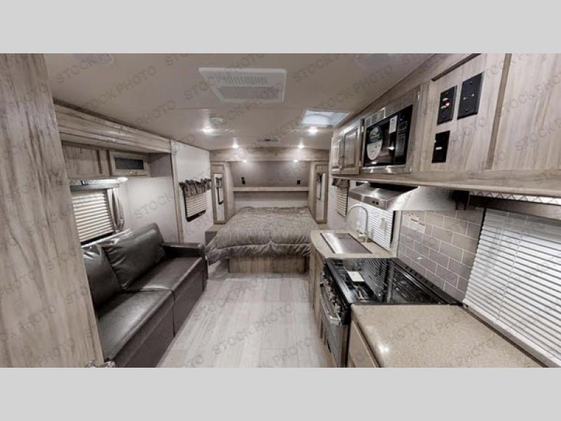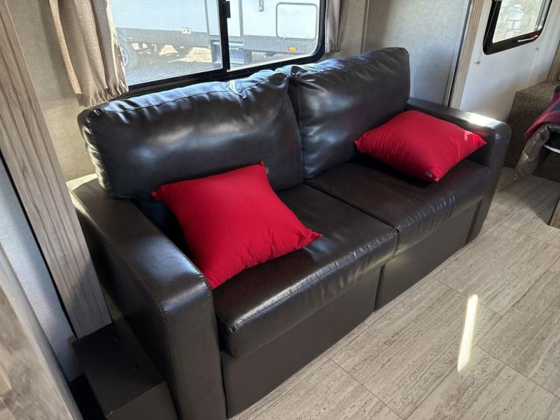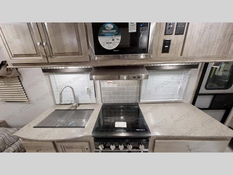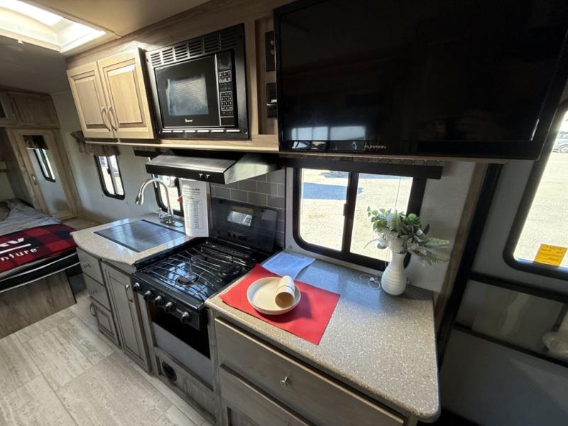 If you enjoy superior amenities that are revamped and up to date, or if you enjoy floorplans that have been designed with your needs in mind, then the SolAire Ultra Lite is the perfect match for you. Because Palomino has included LED lighting throughout each unit, the whole atmosphere is kept bright and fresh. The kitchen skylight lets the sun's rays shine through each morning to illuminate the space even more. These Ultra Lite travel trailers include a Furrion HDMI stereo with DVD and Bluetooth capabilities, which allow you to stay connected to the modern world while you camp. You will find that one of your favorite ways to conclude each day will be to spend it outside underneath the power awning with LED lights as the sun fades away. Choose one of these SolAire Ultra Lite travel trailers today for your next adventure!