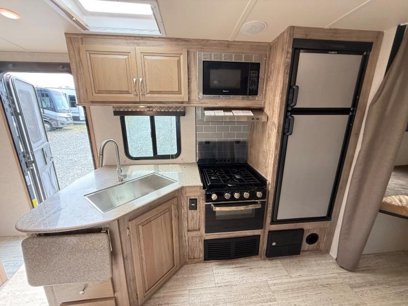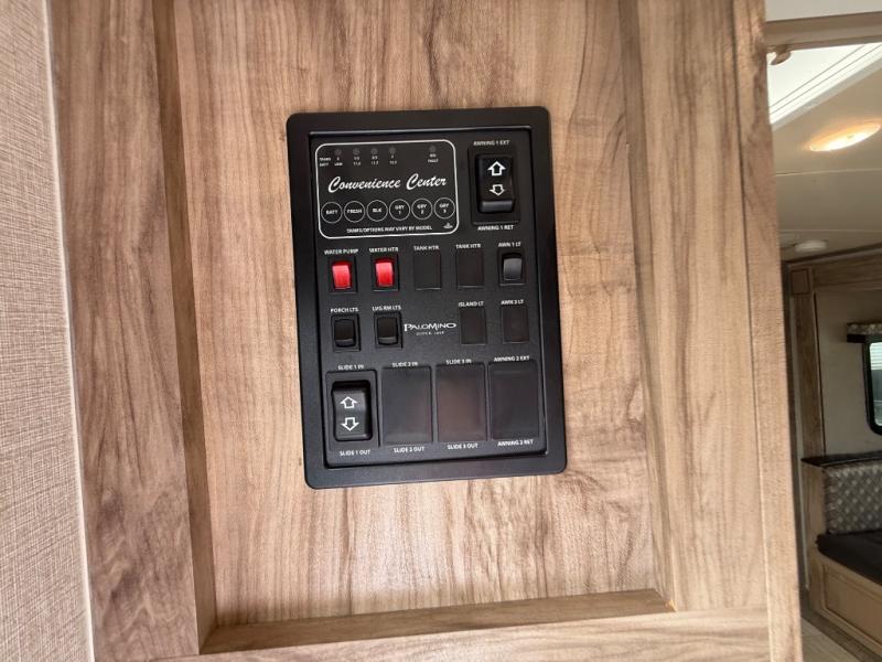 If you enjoy superior amenities that are revamped and up to date, or if you enjoy floorplans that have been designed with your needs in mind, then the SolAire Ultra Lite is the perfect match for you. Because Palomino has included LED lighting throughout each unit, the whole atmosphere is kept bright and fresh. The kitchen skylight lets the sun's rays shine through each morning to illuminate the space even more. These Ultra Lite travel trailers include a Furrion HDMI stereo with DVD and Bluetooth capabilities, which allow you to stay connected to the modern world while you camp. You will find that one of your favorite ways to conclude each day will be to spend it outside underneath the power awning with LED lights as the sun fades away. Choose one of these SolAire Ultra Lite travel trailers today for your next adventure!