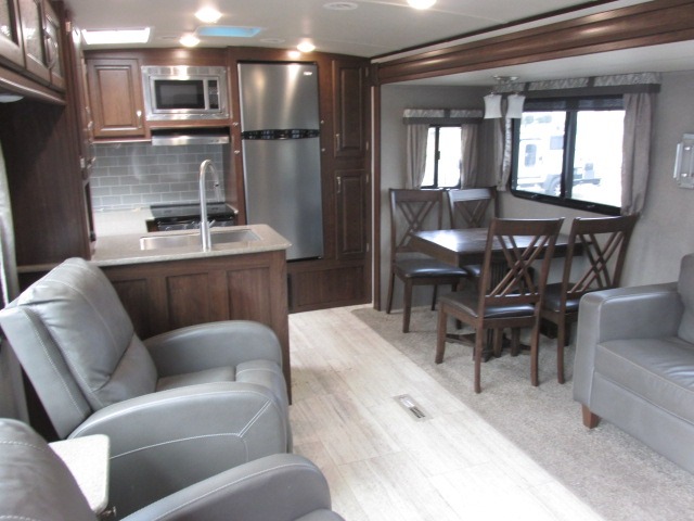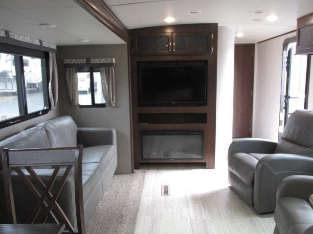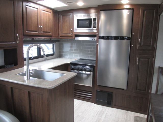 If you enjoy superior amenities that are revamped and up to date, or if you enjoy floorplans that have been designed with your needs in mind, then the SolAire Ultra Lite is the perfect match for you. Because Palomino has included LED lighting throughout each unit, the whole atmosphere is kept bright and fresh. The kitchen skylight lets the sun's rays shine through each morning to illuminate the space even more. These Ultra Lite travel trailers include a Furrion HDMI stereo with DVD and Bluetooth capabilities, which allow you to stay connected to the modern world while you camp. You will find that one of your favorite ways to conclude each day will be to spend it outside underneath the power awning with LED lights as the sun fades away. Choose one of these SolAire Ultra Lite travel trailers today for your next adventure!