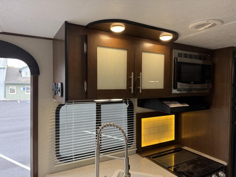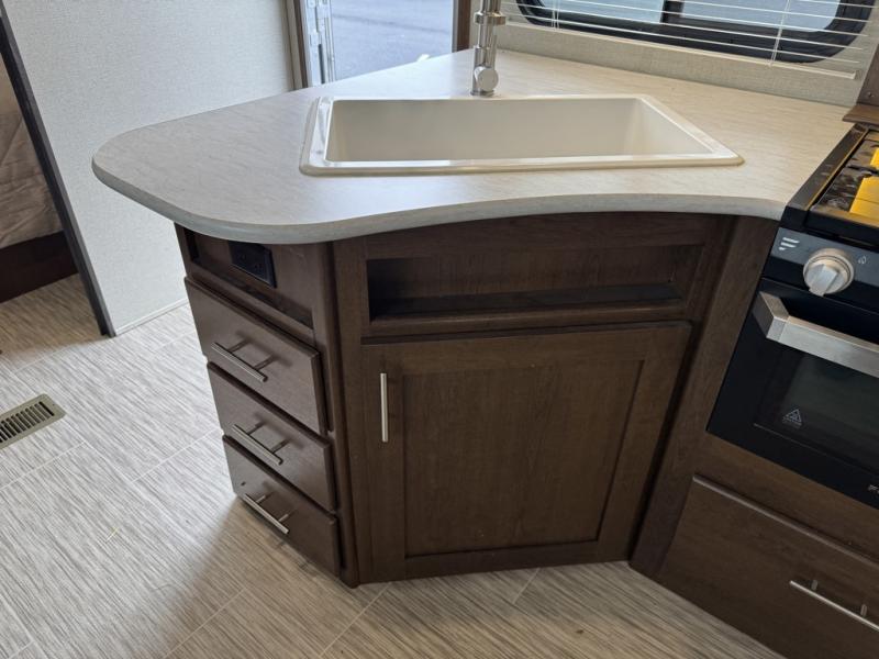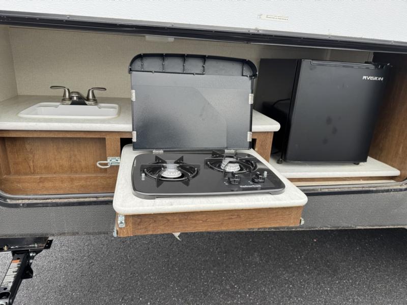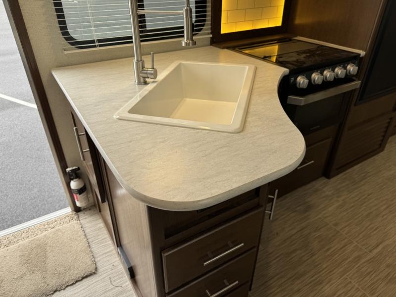 With any Avenger ATI travel trailer, you will feel secure knowing that it has been made with exclusive Everlast construction, and the Dexter E-Z lube axles provide safety and peace of mind while traveling to your favorite locations. Once you have set up camp, you will appreciate the exterior shower that provides an extra place to clean off and the LED-lit power awning that lets you relax outside with family and friends.