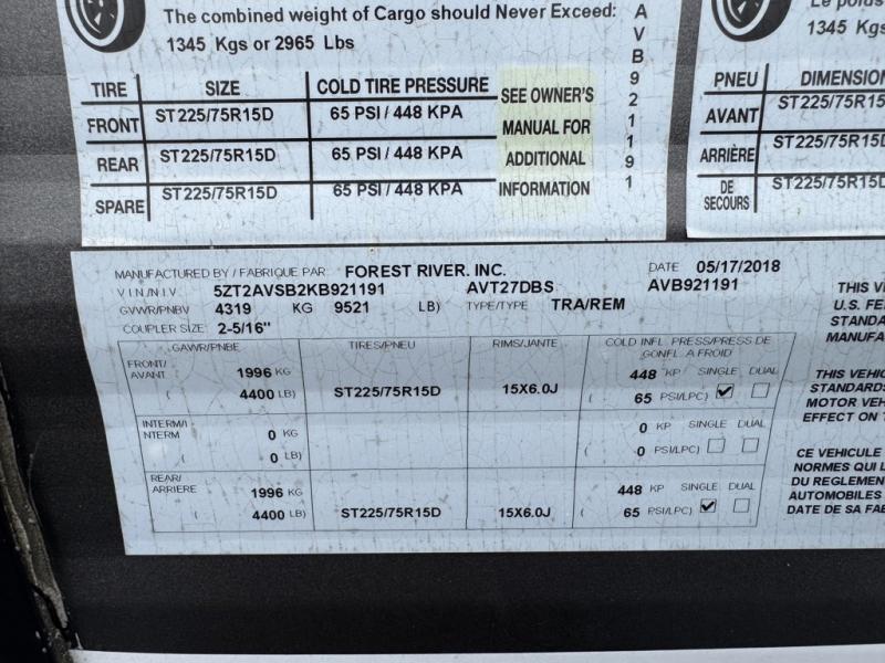 Used 2019 Prime Time RV Avenger ATI 27DBS Travel Trailer