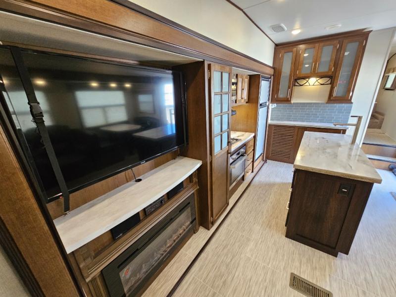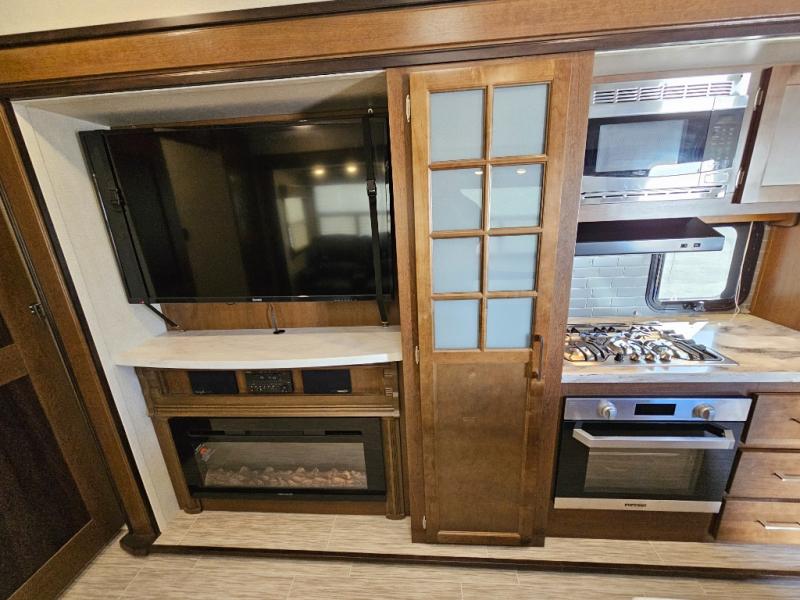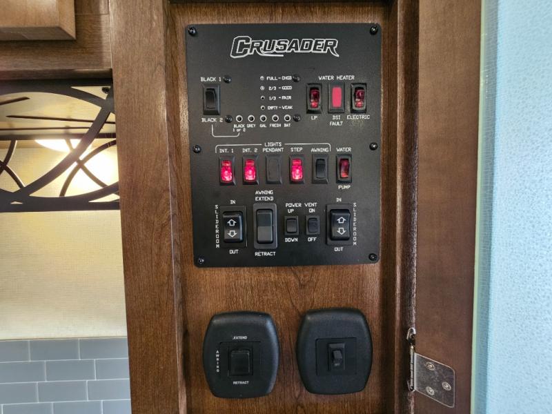 When Prime Time Manufacturing designed this Crusader fifth wheel, they decided to create a higher standard for RVs and a new icon for the 21st century featuring both a stylish interior and a durable foundation built upon the exclusive Eternabond Construction. The large panoramic slide room windows allow the sun to stream through each morning making it feel as if there is no separation between you and beautiful nature, and the blazing fireplace will be your favorite spot to cozy up to each evening while reading a good book or watching a movie with the family.
